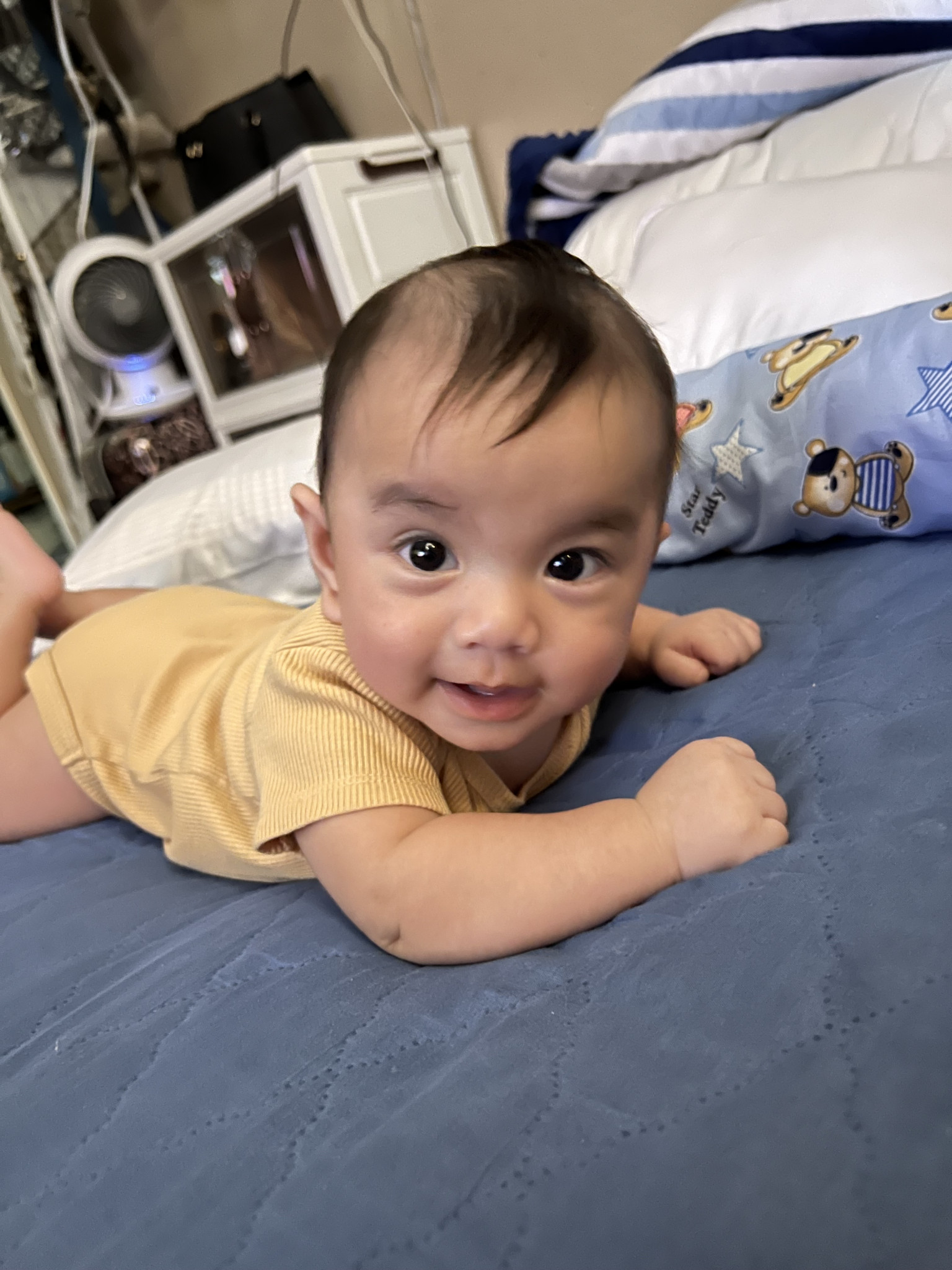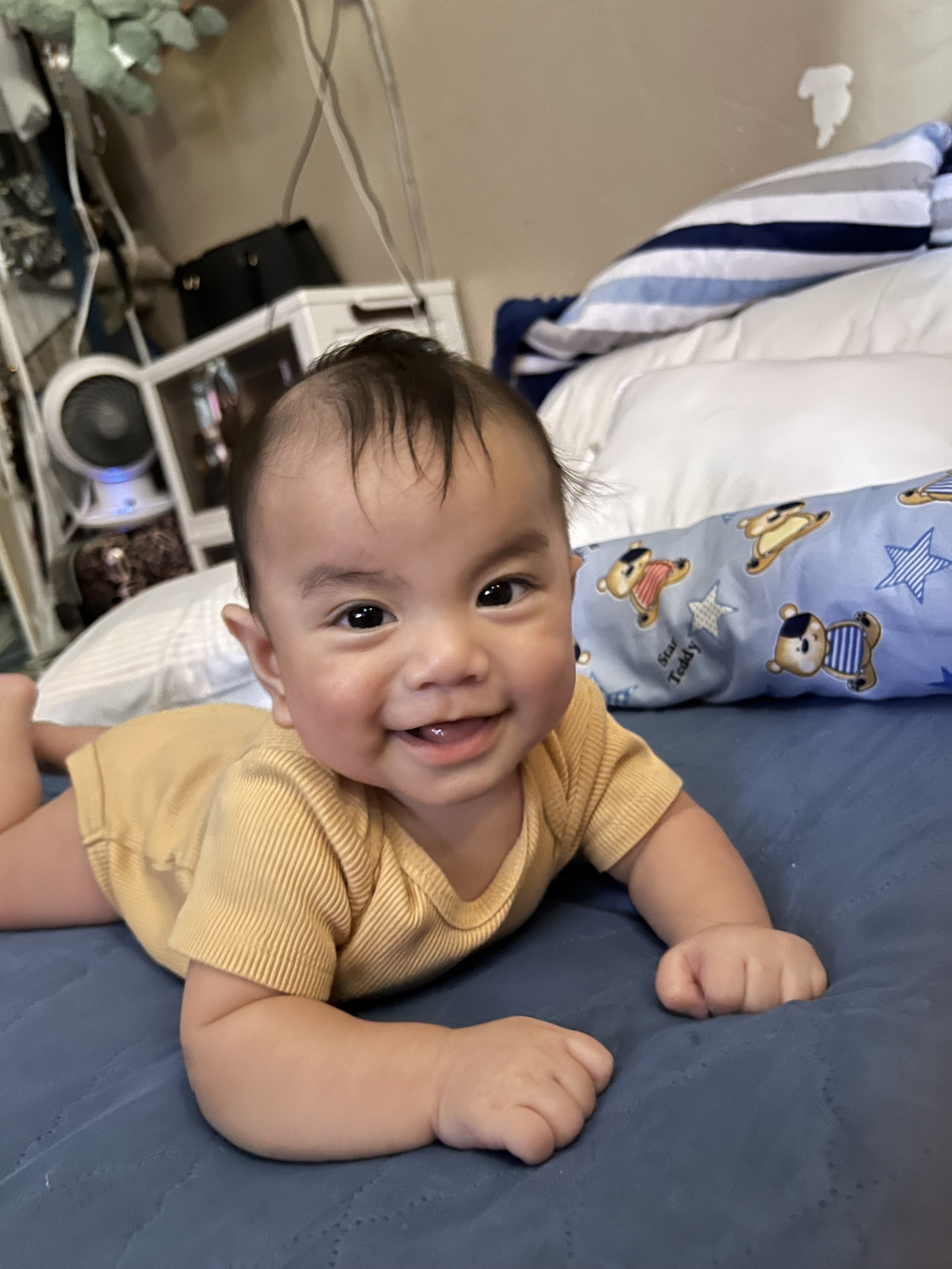 Khristian Jhei is a kind and sweet baby, He is not a crybaby, He is always smiling, He just plays quietly in his crib with his toys. When you talk to him, he just looks at you and listens as if he understands what you are saying, then he smiles at you after you are done talking as if he is saying that,its ok Mom everything will be ok.
