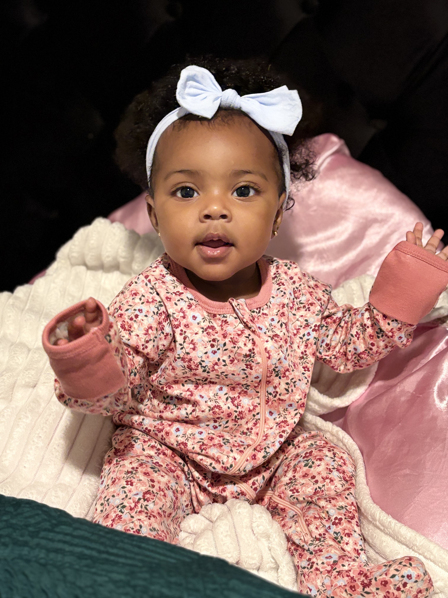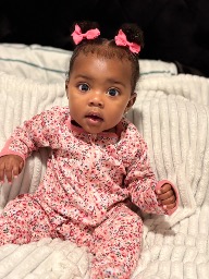 Kinsley already exudes her desires. Her dad describes her as someone who can light up a tunnel. She is a smiley bubbly yet feisty and a very knowing baby. Often times since she was in the womb we saw her fist balled up which showed as she reached each milestone and learn new things that she demonstrates so much heart. Overall, all who come in contact with her being see she is “someone special” and have all said she is very alert. Her spirit exudes an energy of pure comfort,love, joy and LIGHT.