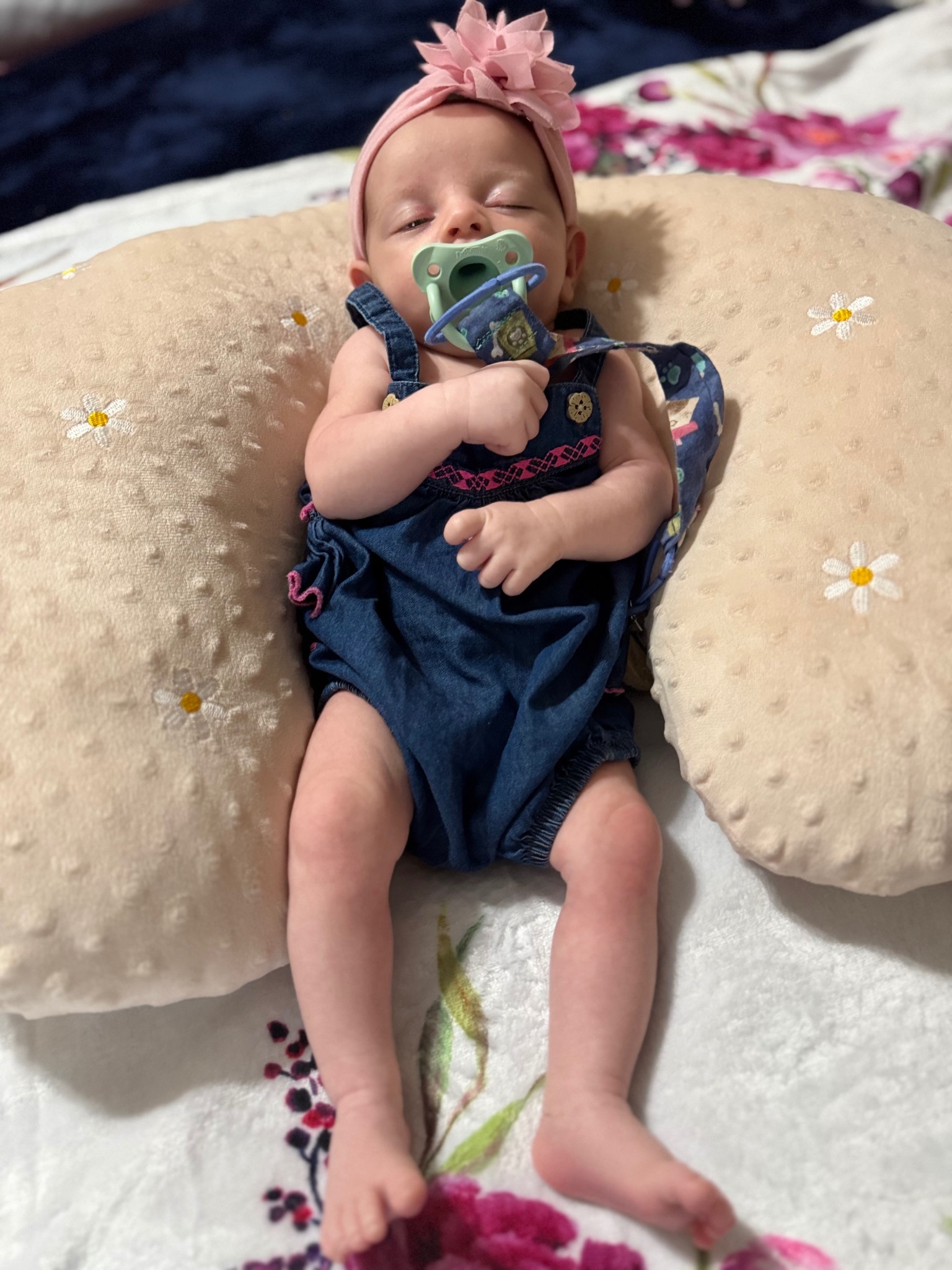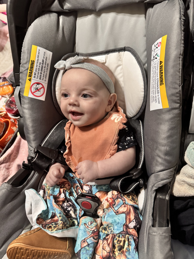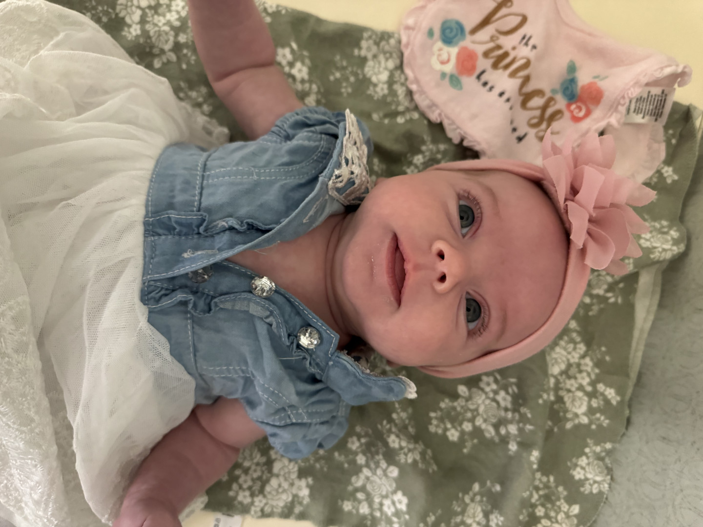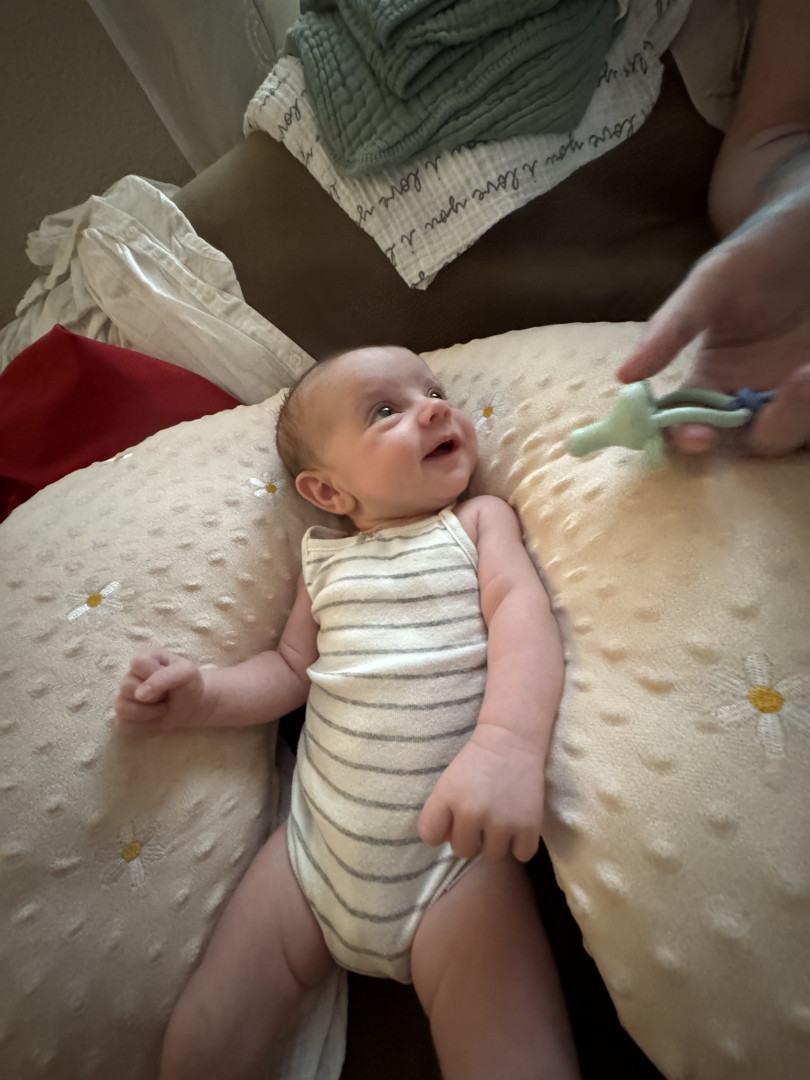 Kinsley smiles even when she’s crying! she laughs and now has discovered she has a Voice and oh my goodness does she have a voice!! She is a very happy baby.