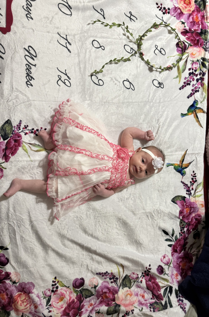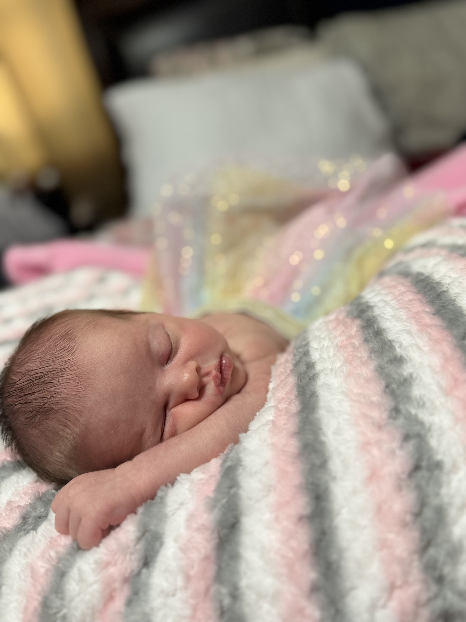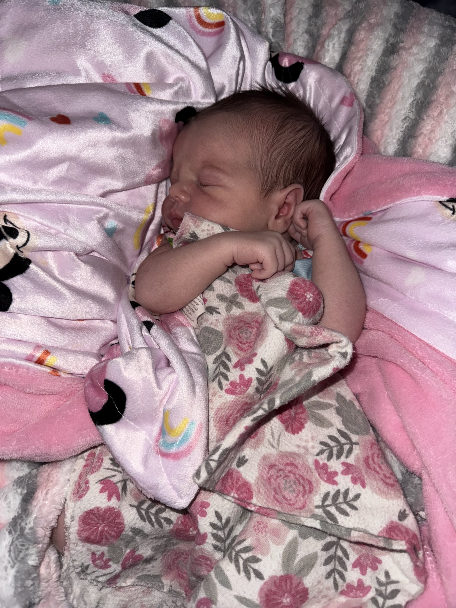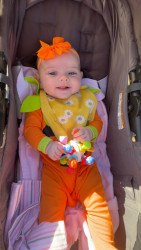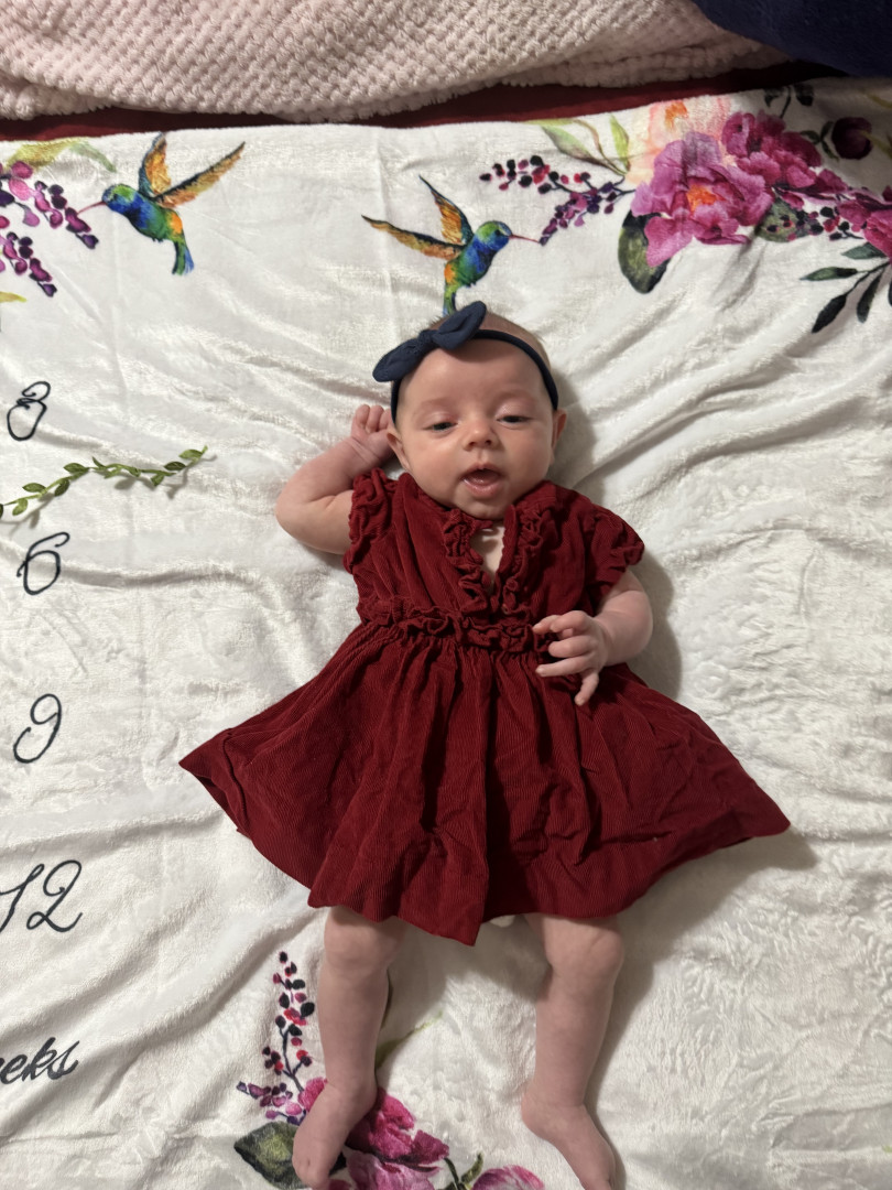 Kinsley smiles even when she’s crying! she laughs and now has discovered she has a Voice and oh my goodness does she have a voice!! She is a very happy baby.