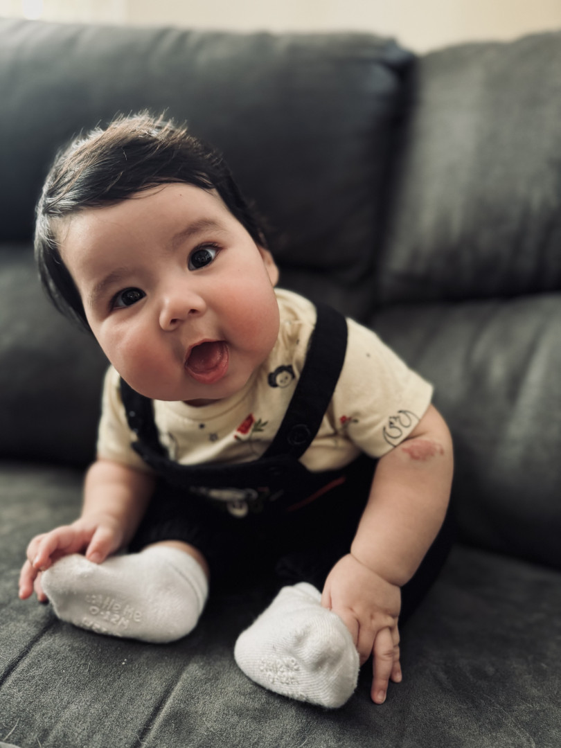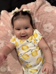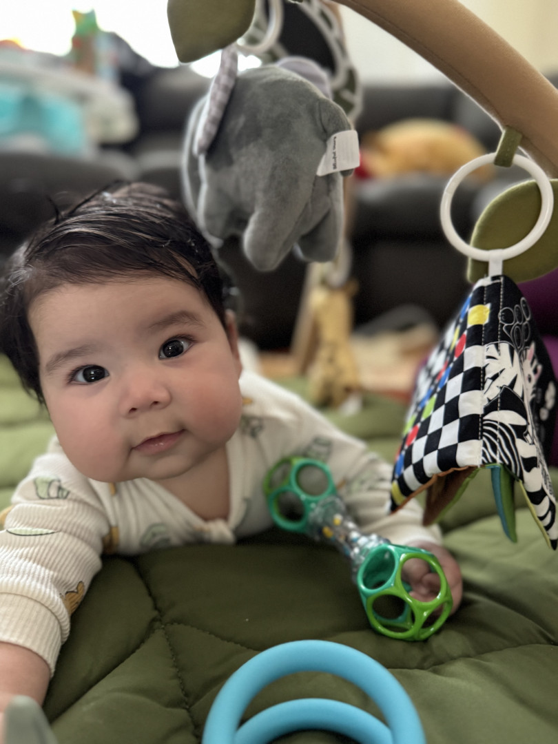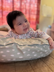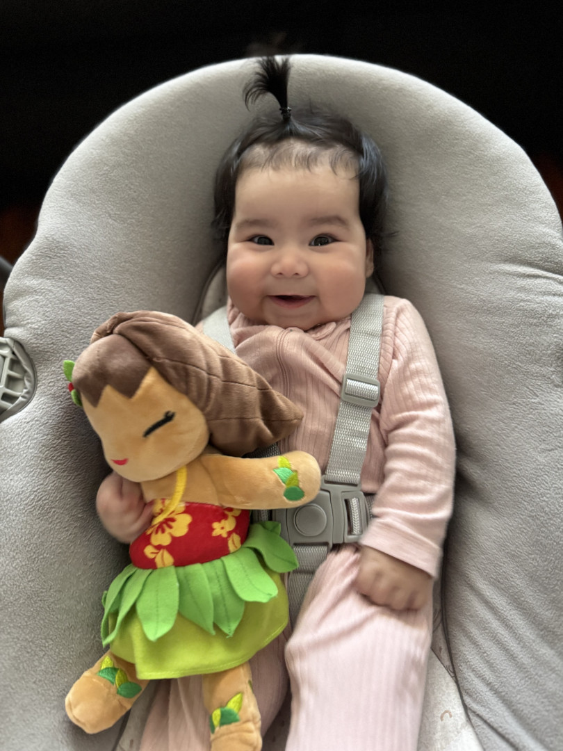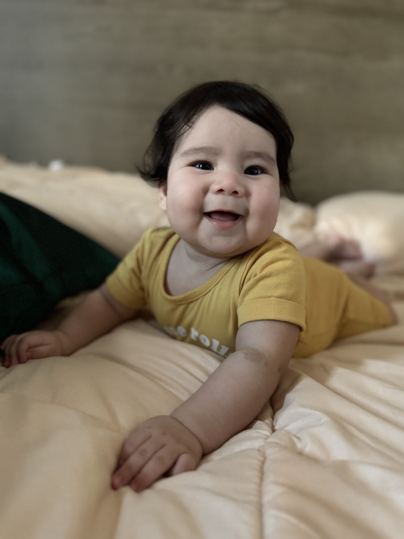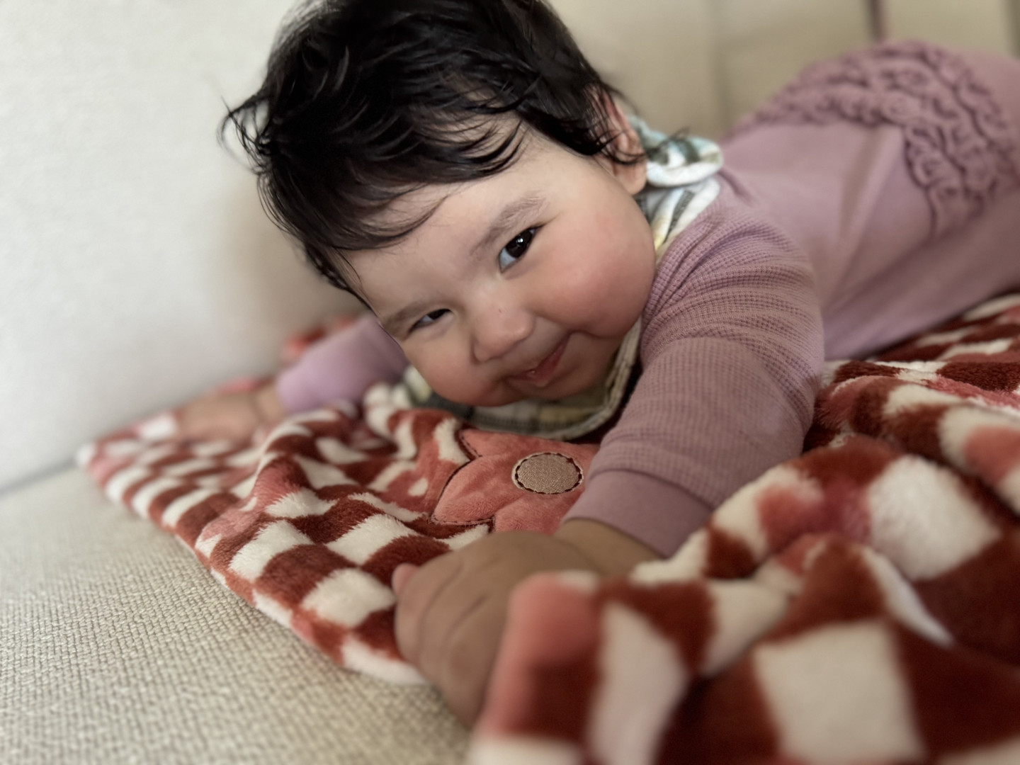 What are Kitana's favorite activities?She’s really into rolling/crawling all over the place. She loves playing with toys that light up or make noise. Peekaboo or me jumping around makes funny noises always gets the best laughs. She’s super curious and always wanting to grab things. Bath time is a favorite too. She can go wild splashing around.