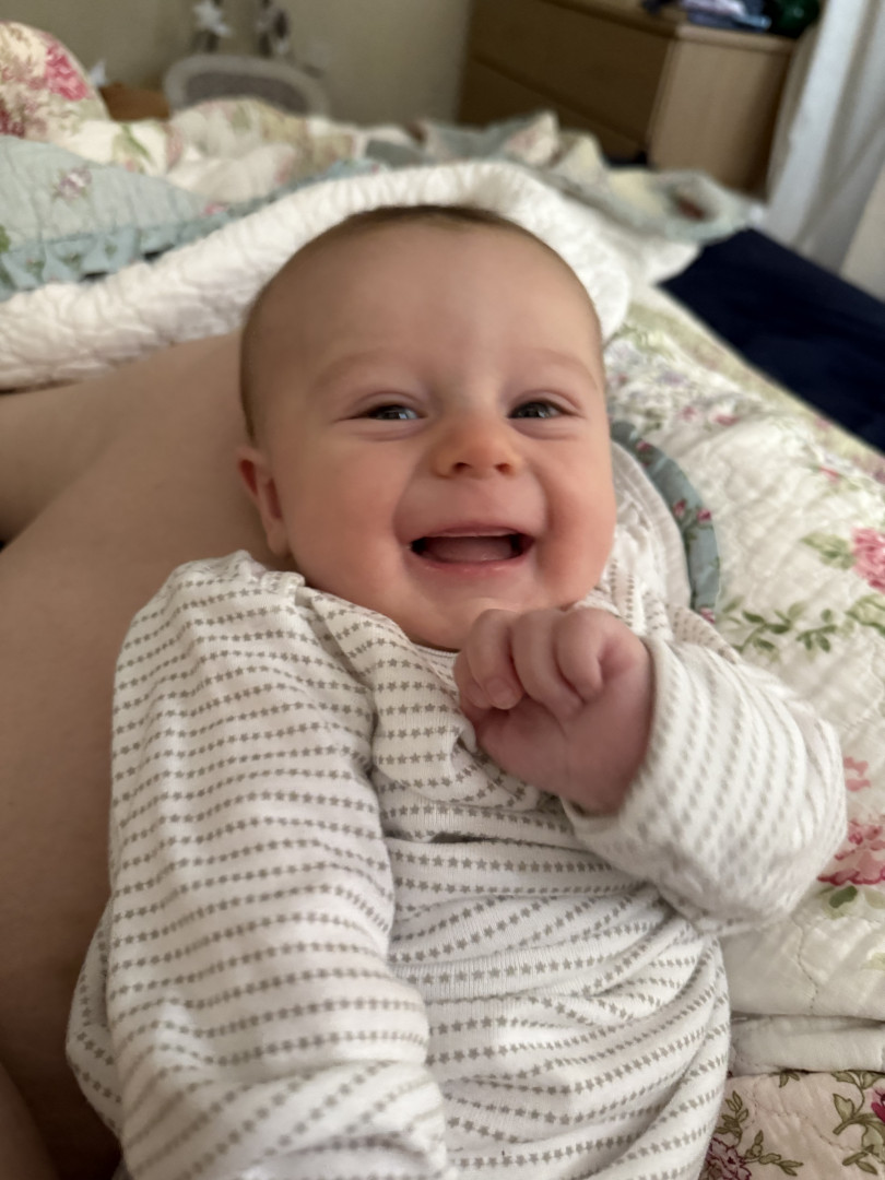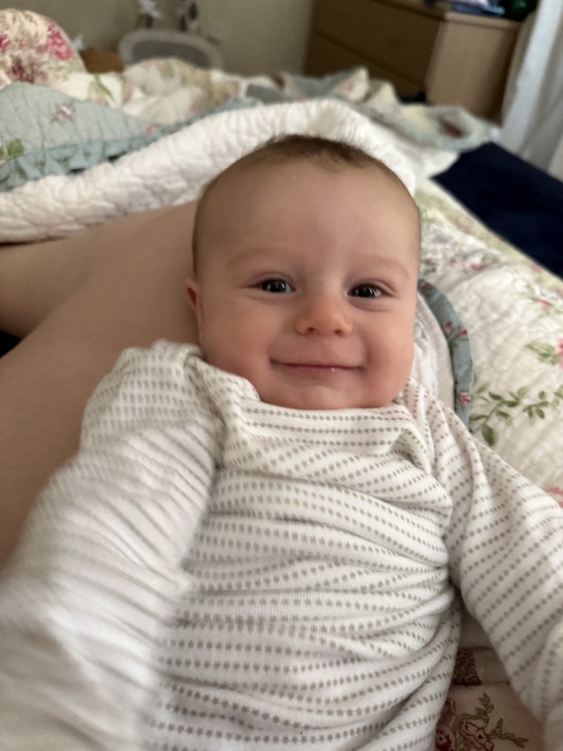 Mr. Smiles, as known by his family and friends. Obsessed with his big sister (could watch her forever). Definitely a morning baby, wakes up cooing and smiling (truly our favorite part of the day).