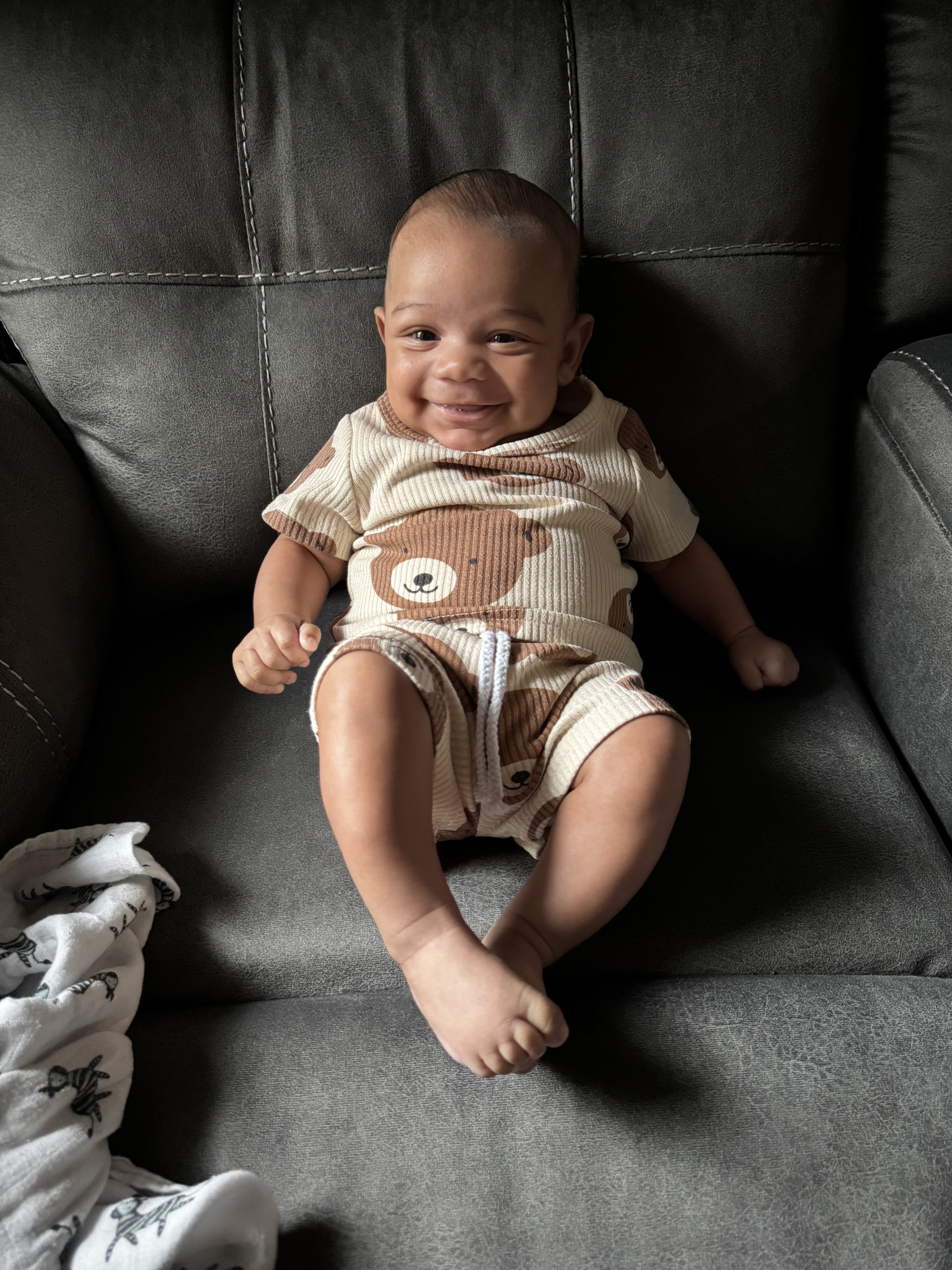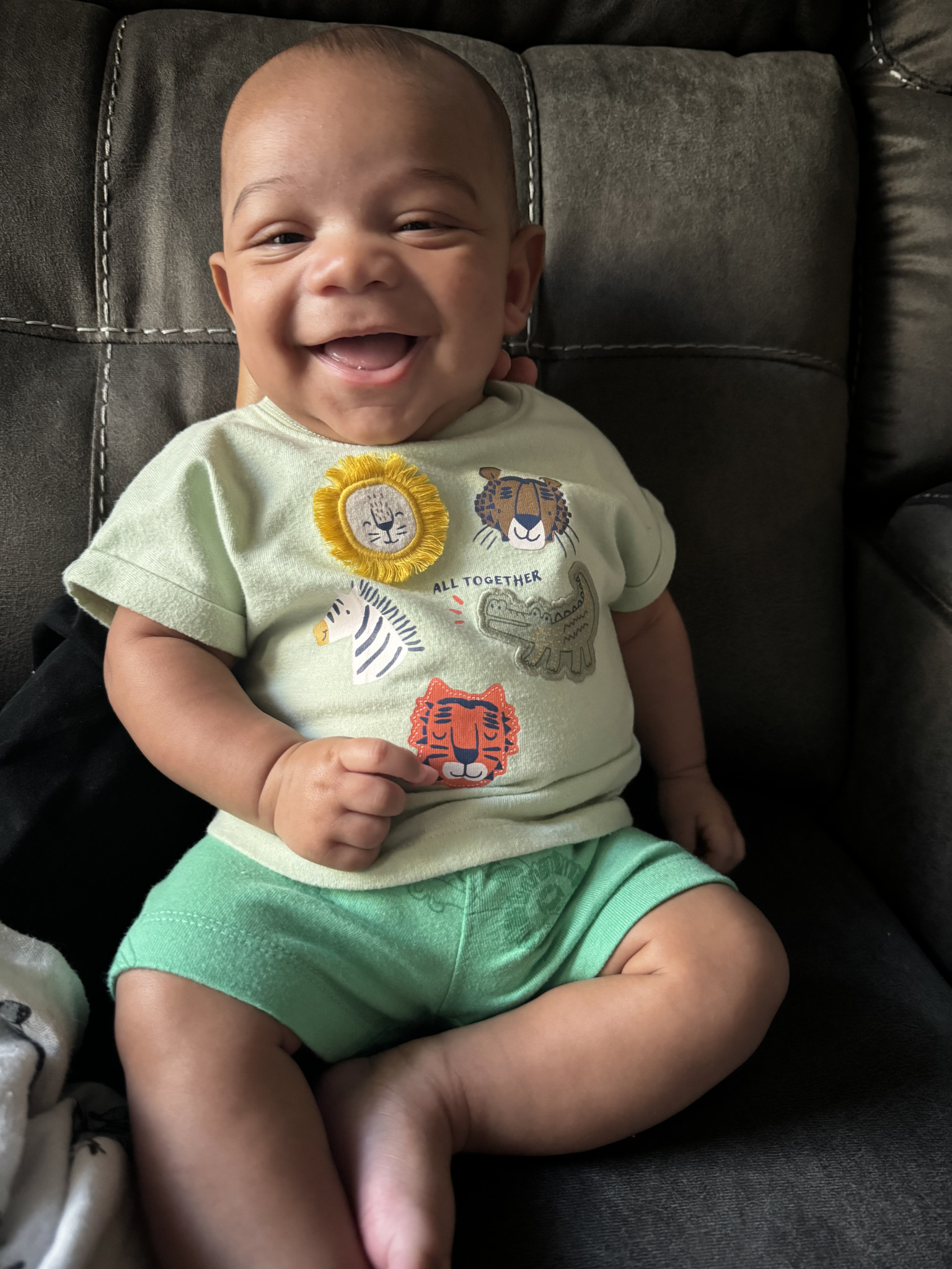 Legacy is already showing such a sweet and curious personality. He’s super alert, always watching the world around him with wide eyes. He has the most heart-melting smile and loves to ‘chat’ with us through his little coos. He’s calm and cuddly, but also lights up when he hears familiar voices. We can already tell he’s going to be a thoughtful and joyful little guy.