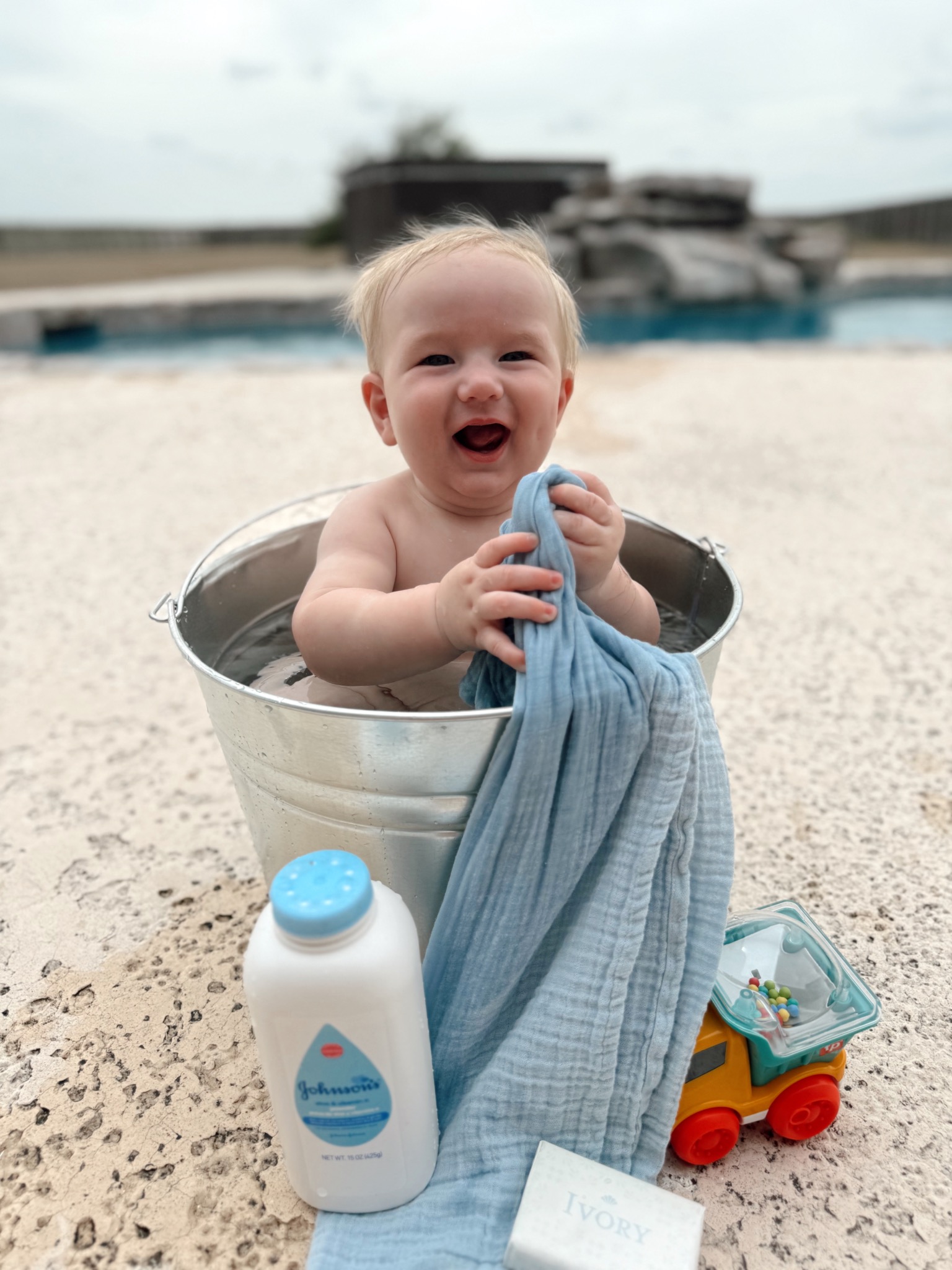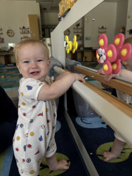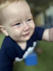 Meet Levi our one-of-a-kind little firecracker! At just 9 months old, he’s already full of personality. He loves to drum on anything he can reach, squeals with the cutest excitement, and never hesitates to let you know when he wants something (and he wants it now!). Crunchy snacks are his jam, his smile could melt the coldest heart, and those big blue eyes? Absolute perfection