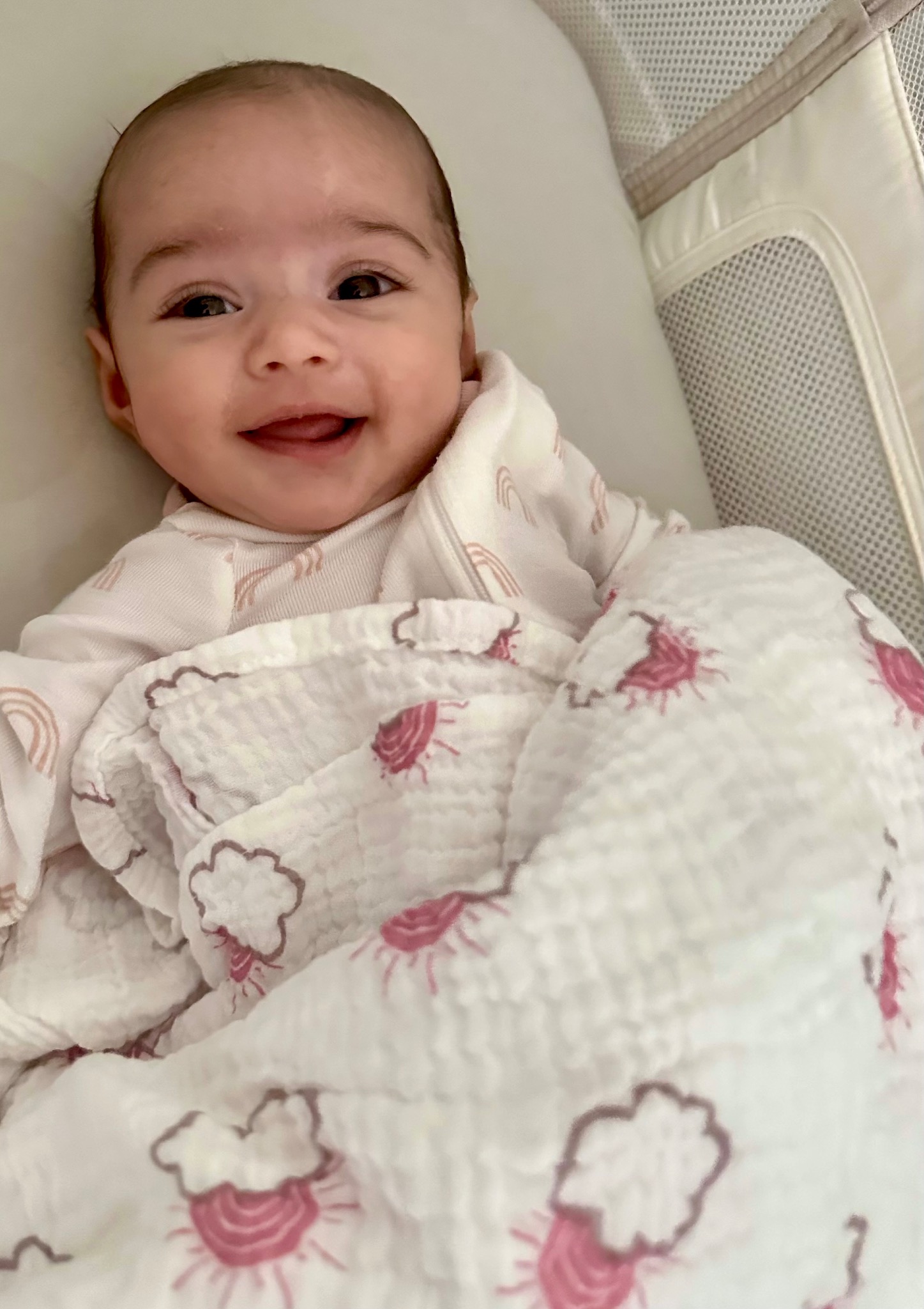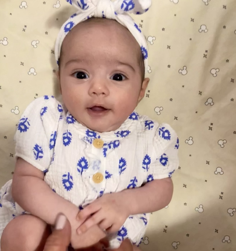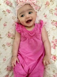 Although she’s only almost 4 months, she’s already giving her mom a run for her money in the sass department. She has a sly little smile that always makes everyone around her laugh, and that mischievous smile turns into a full blown smile once the laughing starts.