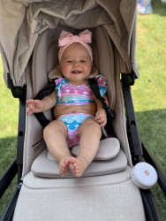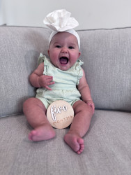 What are Leyla Rose's favorite activities?Morning snuggles with mommy & daddy are her fav she loves to exercise her vocals To start the day & loves kisses from her furry brother Shadie Leyla absolutely loves the outdoors, she loves her stroller & baby wearing walks, she thrives in the sunshine. She loves to go shopping with mommy, and especially loves when mommy wears her in the carrier so she can people watch. She loves her play mat listening to nursery rhymes and like to turn herself over and sit up she is now starting to crawl!