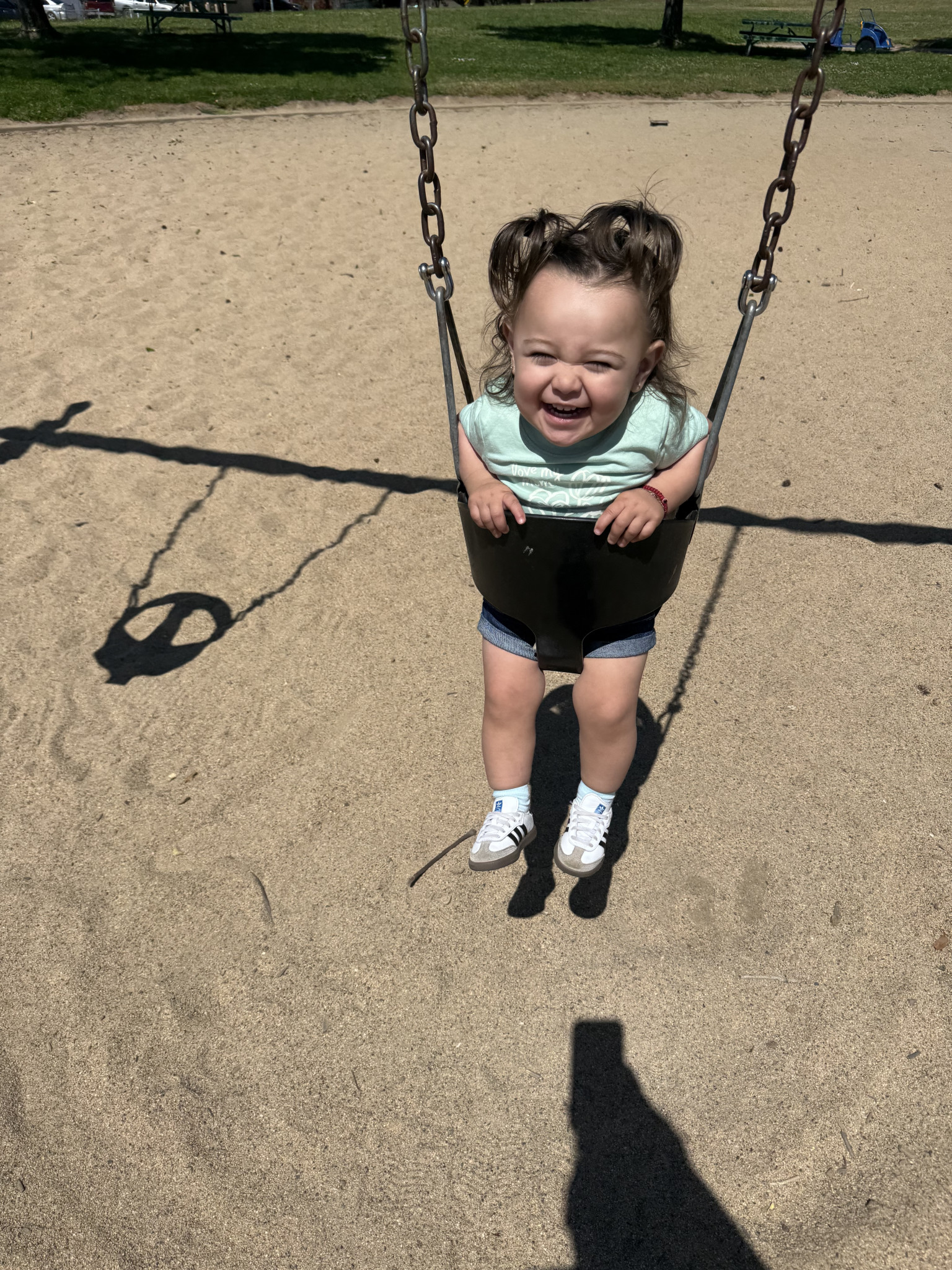 My 18 months old has a cheerful social personality, she’s very curious and friendly. She catches attention every were go.