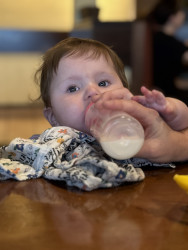 She is very bossy haha! She loves saying the words she learns like mama and dada and her most recent is oh no. 😂 She loves her toys and food too!