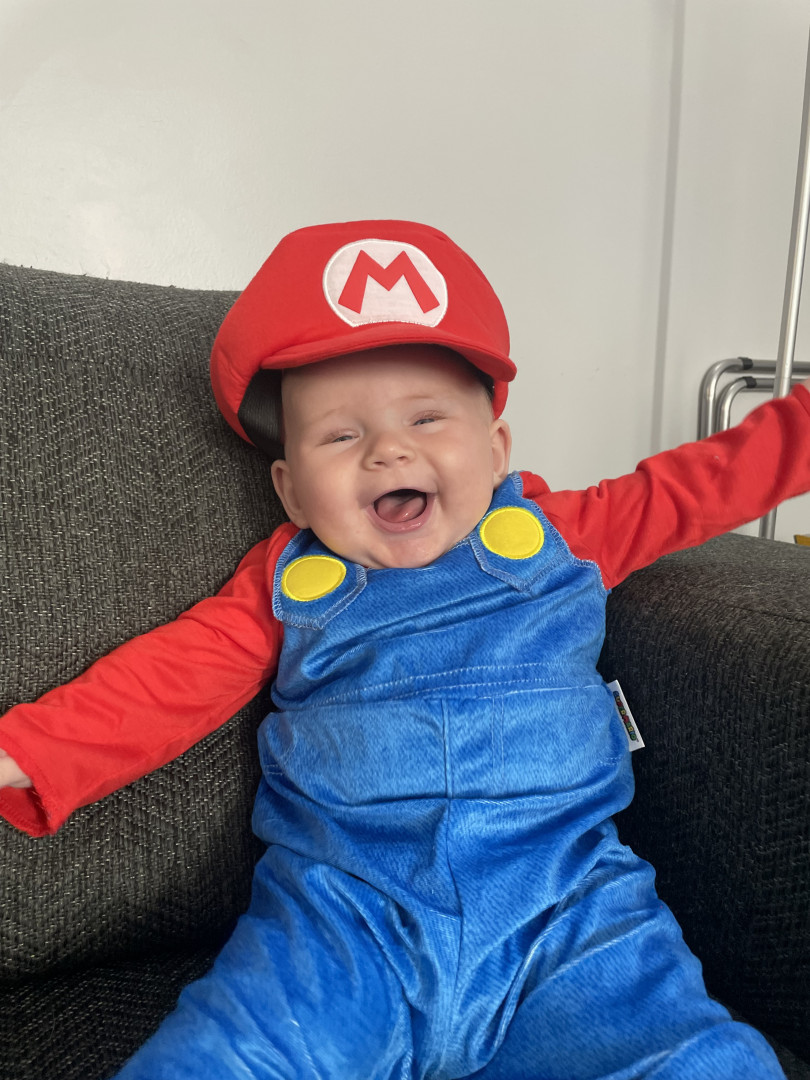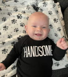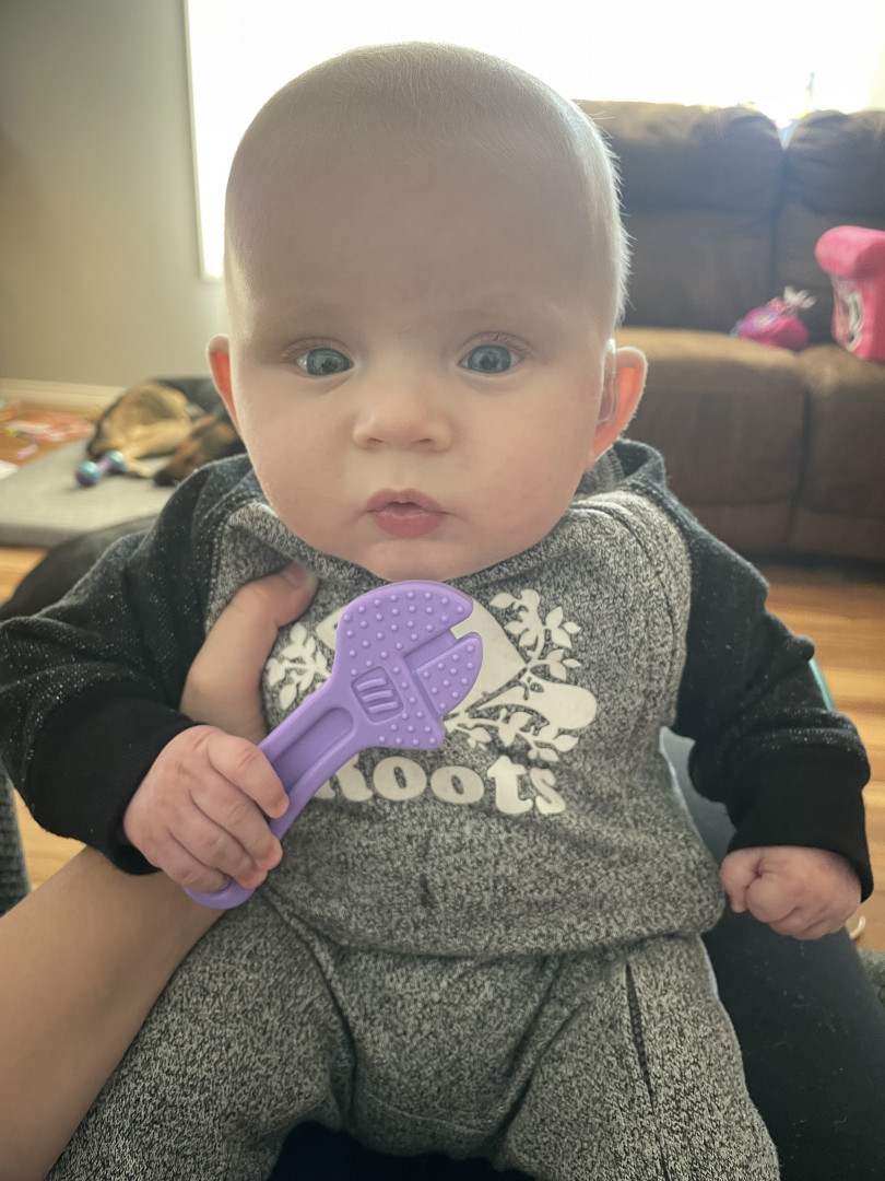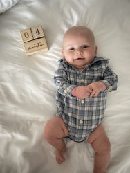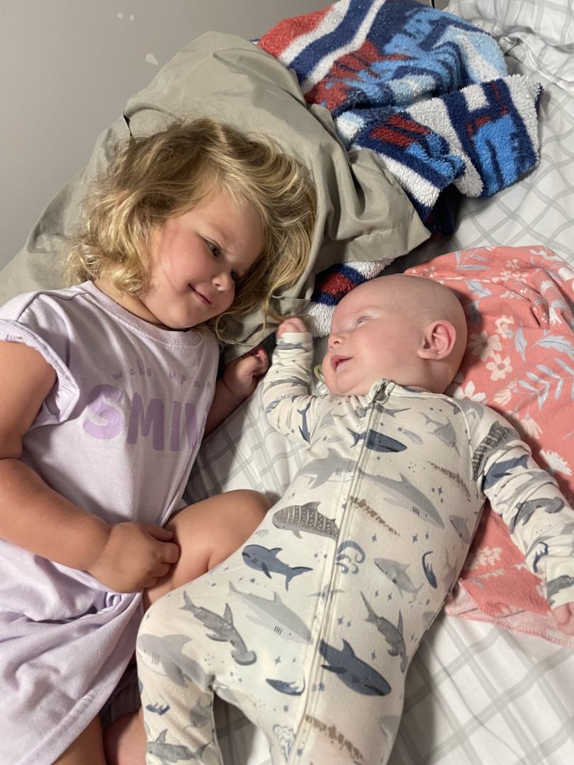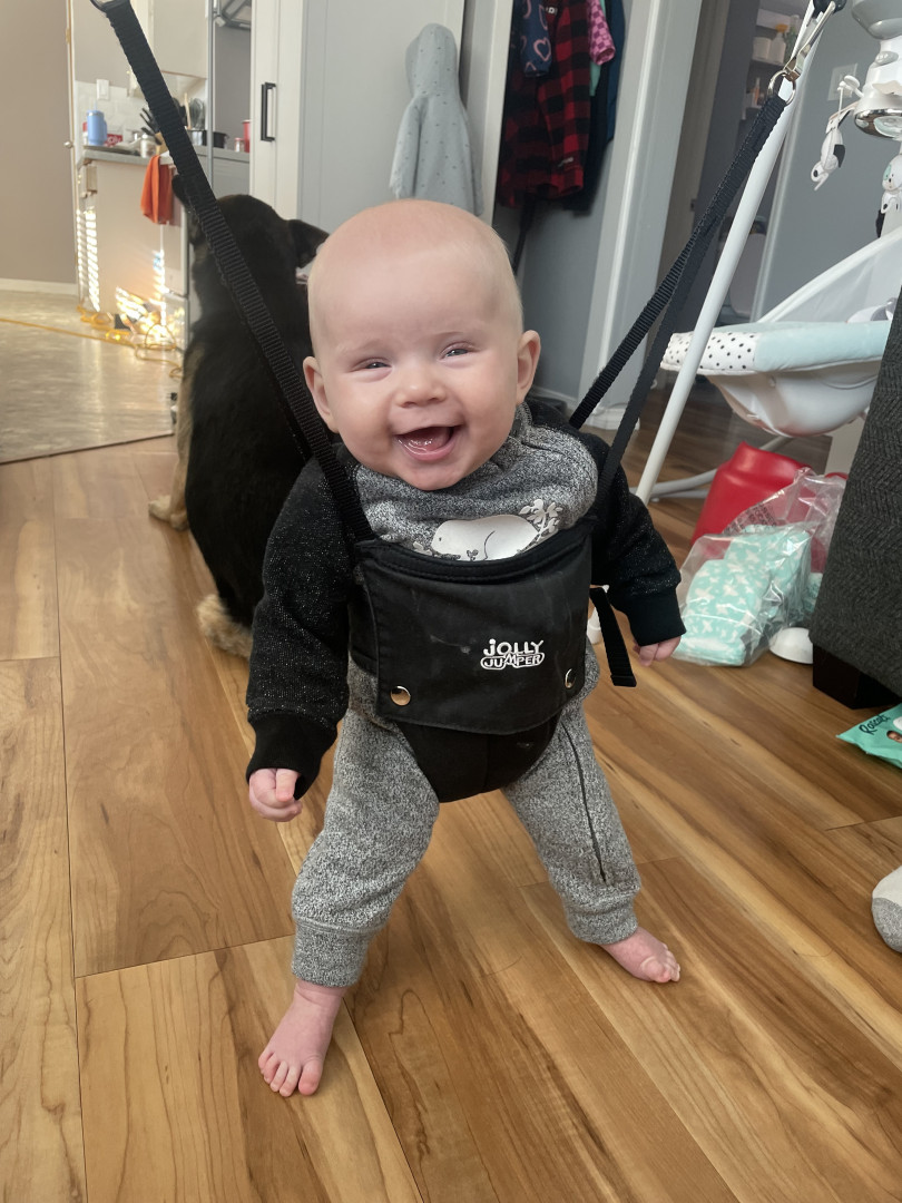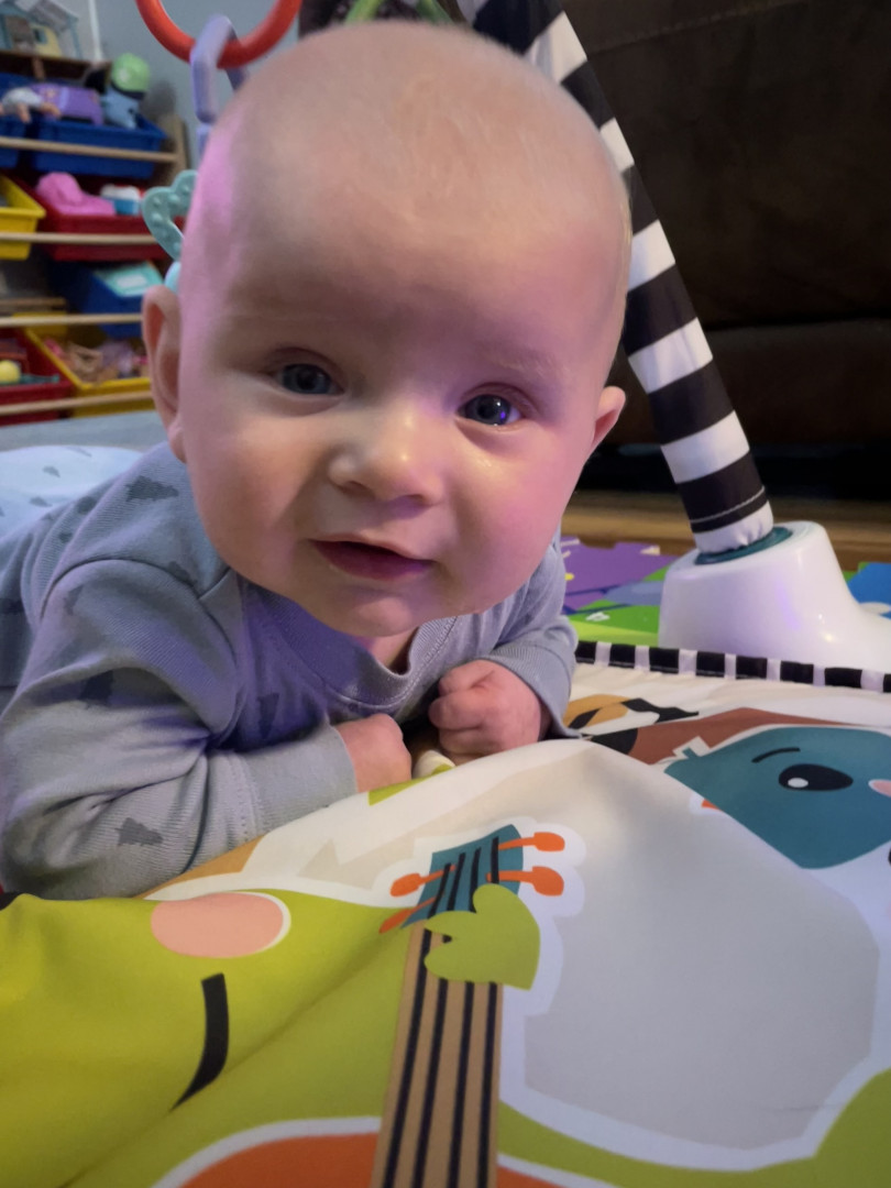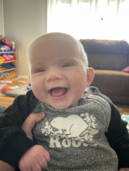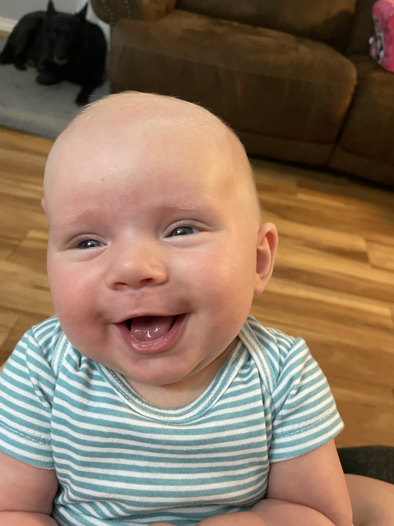 He loves to smile at everything especially his sister. He’s very giggly. Just found his voice, and loves to tell all the stories