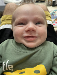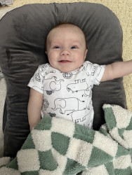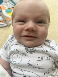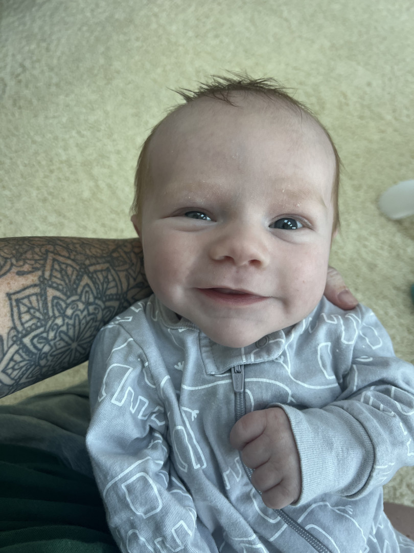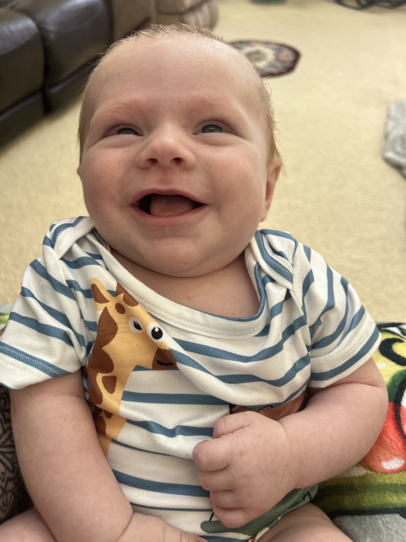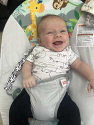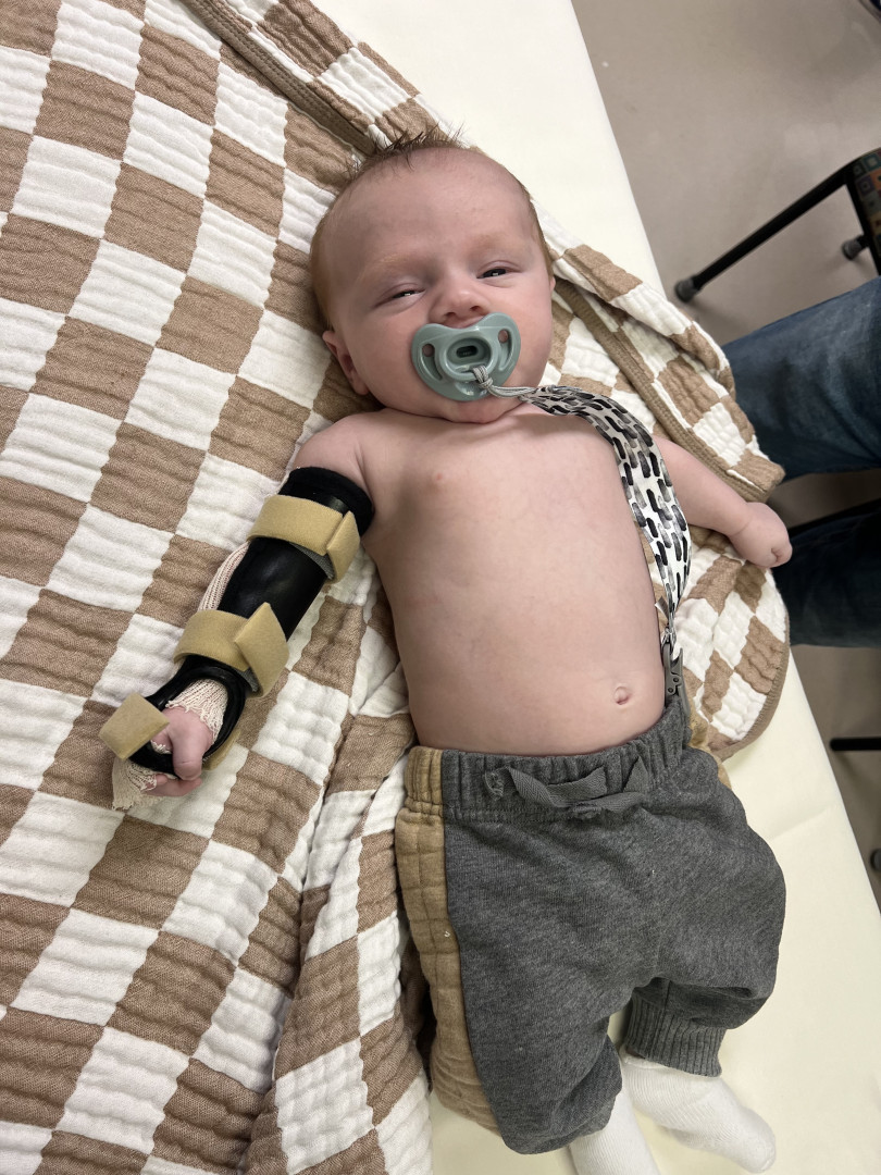 Even with his injury, he is still a bubble little man. Shooting smiles at mommy after feedings and laughing at daddy during diaper changes. Nothing stops him from living life and smiling which makes his parents very happy to see his joy.