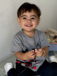 Luar is a very happy boy, he likes to dance, play with his dog, he likes cars, going outdoors, he is very affectionate, and he likes to go around greeting people with his fist or his elbow.