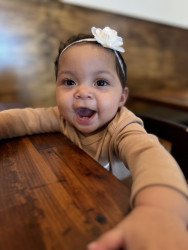 Luna has a bright, bubbly personality that makes her hard to miss. She loves to smile and laugh, always finding joy in the little things. Confident and full of charm, she has a bit of a diva side — never afraid to show her style or speak her baby mind. Whether she's giggling or just enjoying the moment, Luna brings a positive energy wherever she goes.