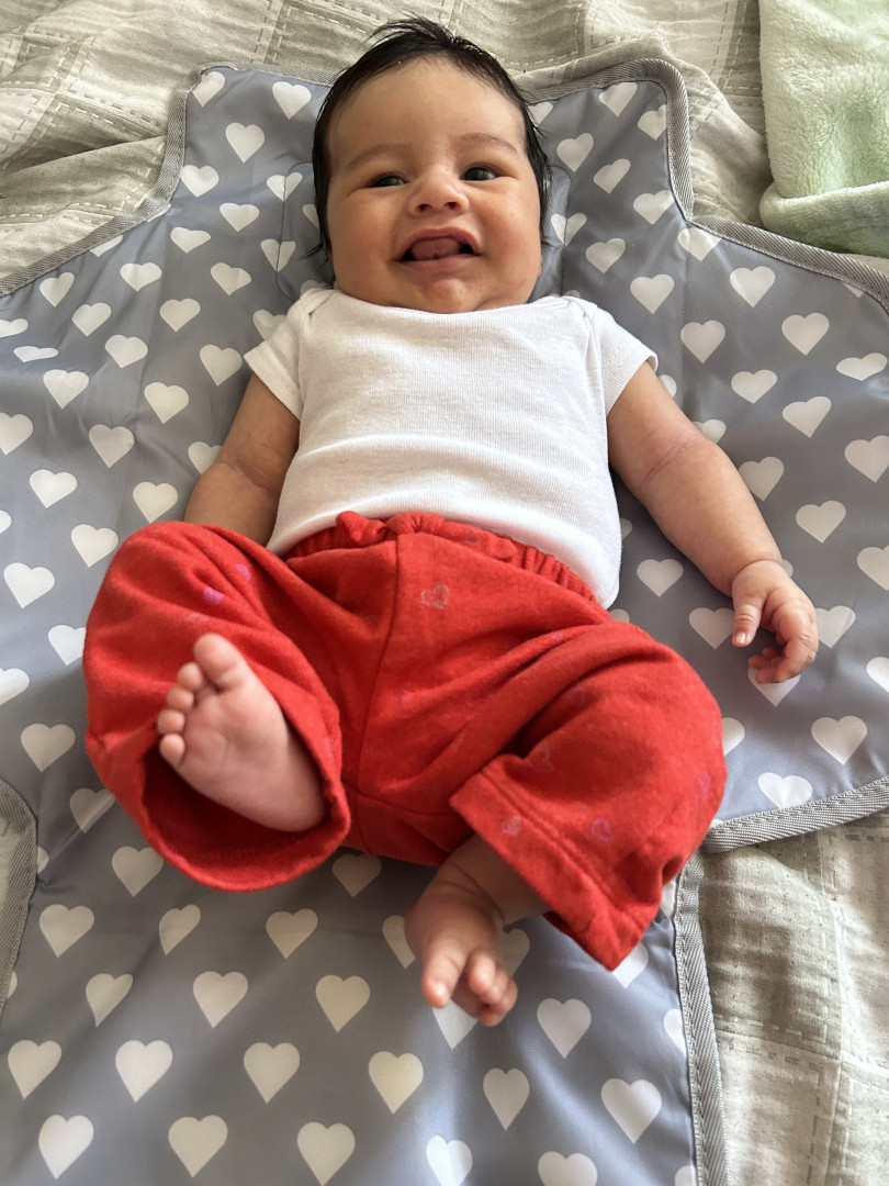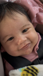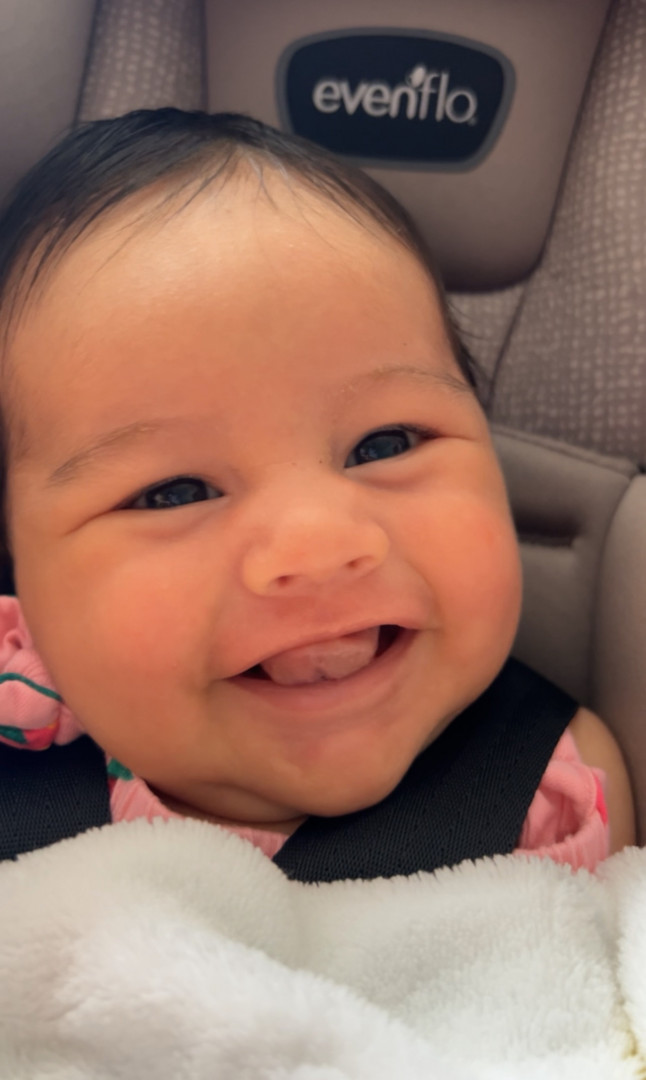 Luna is a calm baby who loves all her family, especially grandma! She has been smiling from early on and she is always happy. Luna is not one to cry, she lets out a fuss or two when she wants something from her mom and dad and is in fact very curious of the world surrounding her. Luna loves to be around all her family, mom and dad of course, but also her grandparents, aunts, and uncles. She always the happiest when all her family is together showering her with lots of love.
