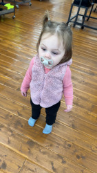Madelyn is very loveable, affectionate. She acts shy until she’s comfortable with you. She’s very curious and loves to explore. Lots of energy but will have outbursts when you try helping her bc she try’s to be so independent. She loves to imitate you and laughs while doing it