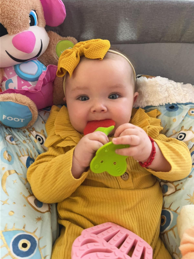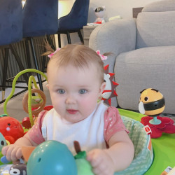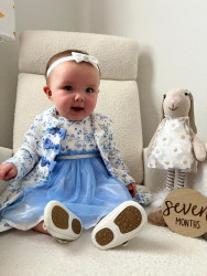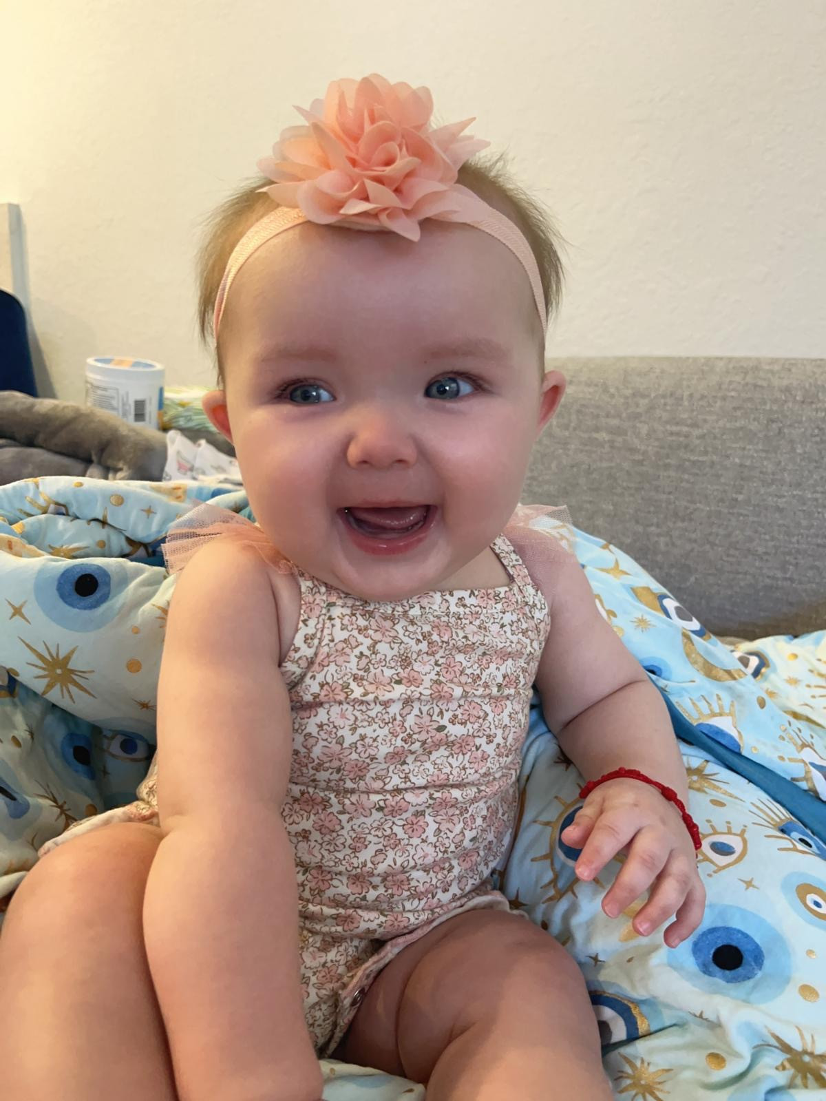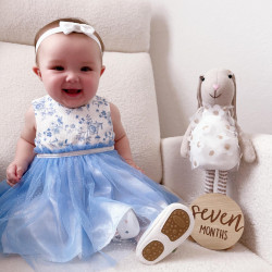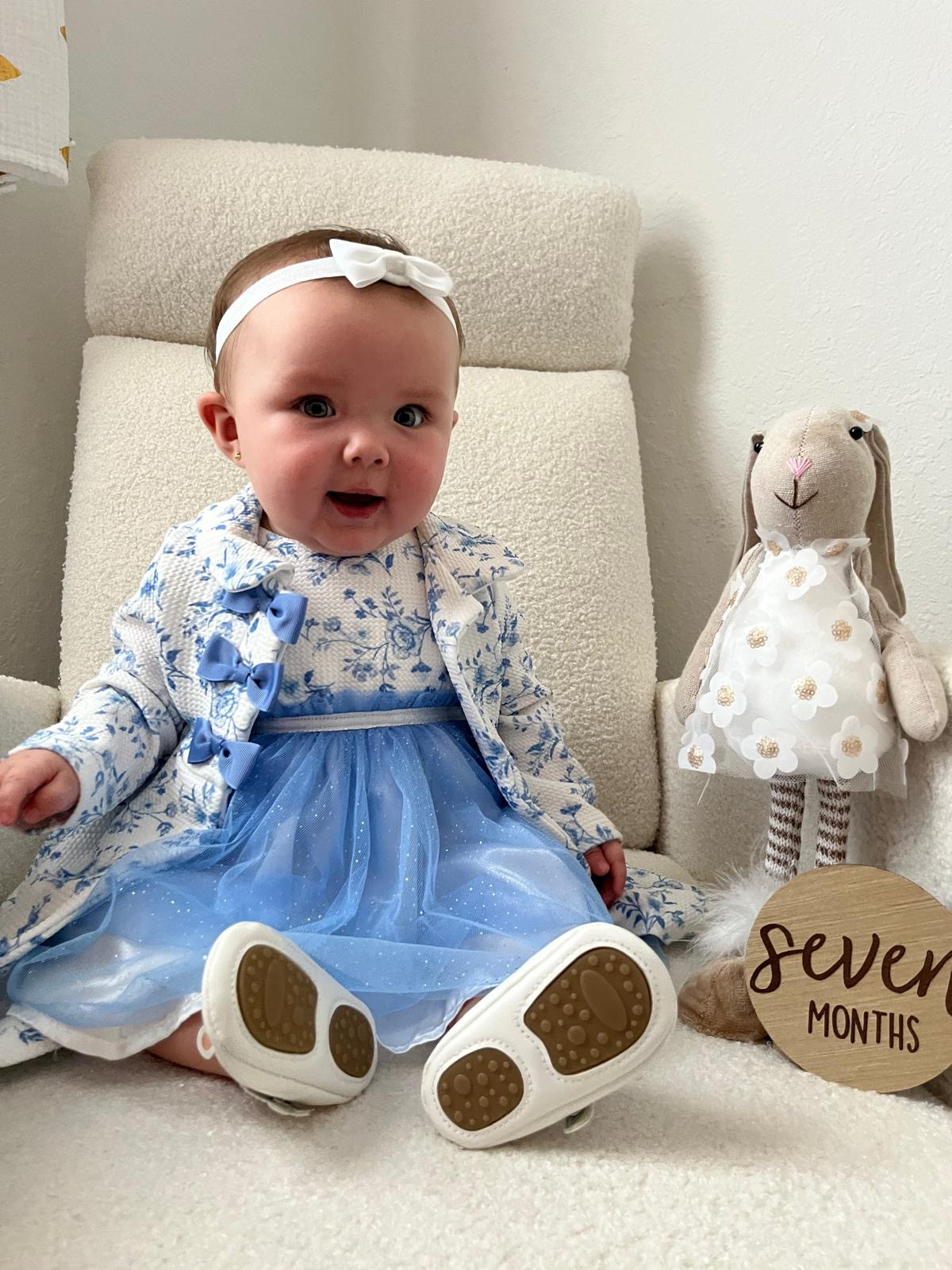 What are Madison's favorite activities?Madison’s days are filled with giggles and fun, she adores peek-a-boo, Bluey book time with mommy and daddy, blowing sweet kisses, exploring every corner, and dancing her little heart out to her favorite songs