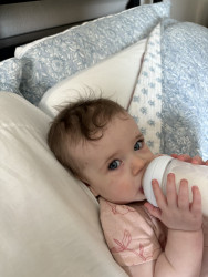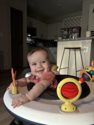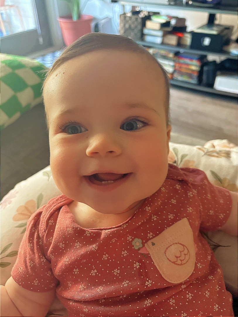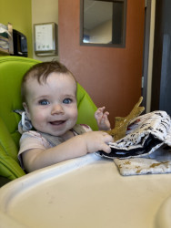 Maisy loves to laugh and play all day with her mommy. She hasn’t found a food she doesn’t love, and everyone who meets her gets a big gummy smile!