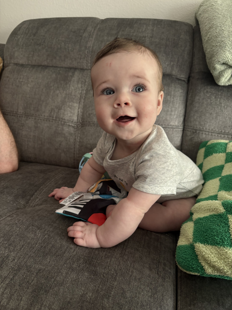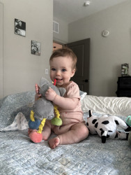 What are Maisy's favorite activities?Maisy loves going on walks with her mommy, and laying out on the grass while playing with her crinkly books and looking at all the bright trees!