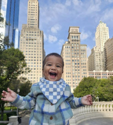 What are Marcus's favorite activities?Marcus loves playing with his toys and playing with other babies. He also love to spend time with his animals in his little farm. He loves when we go and feed the ducks and geese, and also loves to touch his baby goat. Marcus loves his animals—he is really an outdoor baby. He loves to spend time outside and see different things and he smiles... that’s the most gratifing thing I can get from my baby. He gives so much joy to anyone that meets him.
