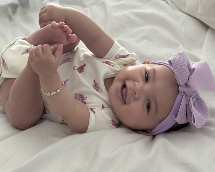 At just four months old, Margo already has the personality of a tiny CEO—full of opinions, dramatic sighs, and the world’s most serious stare… until one of those big smiles melts us all.