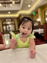 What are Marianne Ditas Aspinwall's favorite activities?A joyful 5-month-old who already loves sitting up with support like a little queen on her throne! She just started enjoying her baby cereals and makes the funniest faces while eating. She lights up at songs, giggles, and colorful toys. Bath time is splashy fun, and she’s fascinated by her reflection. Every day brings new smiles, coos, and little adventures — our curious, joyful Marianne is growing so fast! ✨