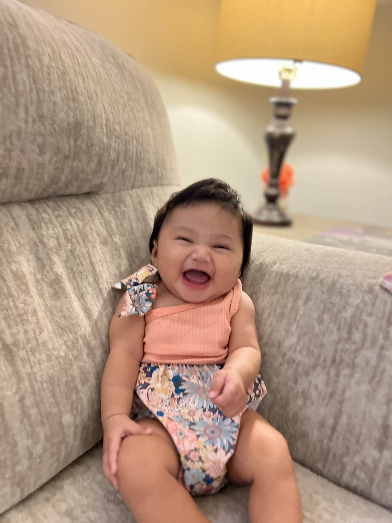 She is a little bundle of joy with a big personality! Curious explorer, always noticing new faces, lights, and movements. Social butterfly, smiling and cooing at everyone. Expressive sweetheart, communicating with gurgles and squeals. Cuddly and affectionate, loving snuggles. Full of wonder, discovering new things every day. Our Marianne is already bright, loving, and curious!
