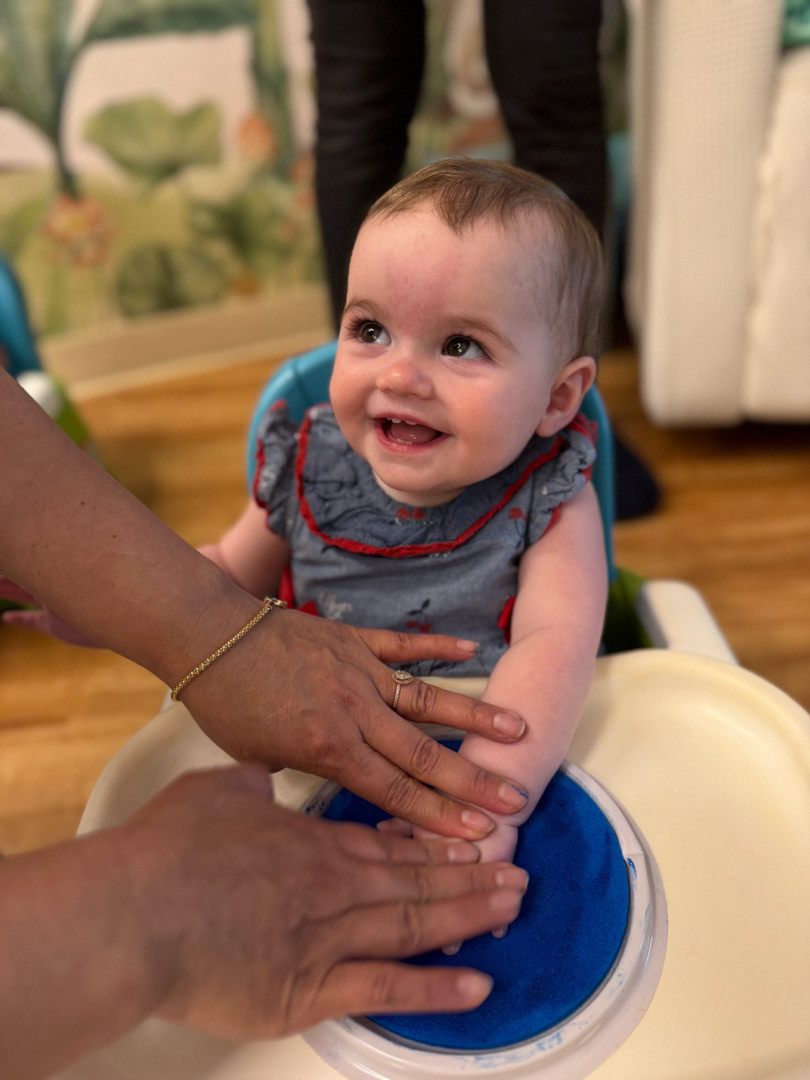 Marietta's megawatt smile could power a small city! This 4th percentile titan greets the world with infectious giggles and curious big eyes that ask, "What's the adventure today?" She's a pint-sized copycat who imitates everything, reaching out with chubby hands to shower her family with love. Her radiant personality draws strangers like a magnet; they can't help but smile back at her dimpled grin that lights up every room she enters with pure joy.