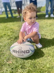 What are Martius Campbell's favorite activities?Martius makes everything fun—pushing his beach chair around like a bumper car, tossing balls (never kicking!), and swinging bats or shooting hoops. He loves dogs, cats, and playing ball with his aunt’s pup. When he’s not on the move, he’s happiest turning pages in a book or snuggling in for a feed.
