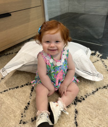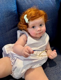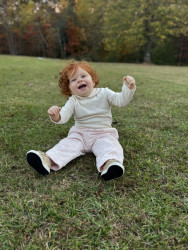 Mary Jean is pure sunshine with a bold streak. She wins hearts with her big smile, fiery curls, and playful charm. She’s curious, fearless, and full of mischief, waving like a little mayor, pointing like she’s giving directions, and giggling until everyone around her laughs too. She has an old soul’s warmth wrapped in a baby’s joy, making each moment unforgettable.