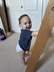 Mason is a determined go-getter. When he sees something he is curious about, he goes for it with gusto! You can read the sweet satisfaction on his face when he gets his hand on or sinks his teeth into what he's after. He is such a happy little man. There's nothing as joy-inducing as his belly laugh when it fills the air. Mason is working hard to learn words, and his babblings are resembling words more and more each day. With Mason, every day is filled with wonder, growth, and fun.