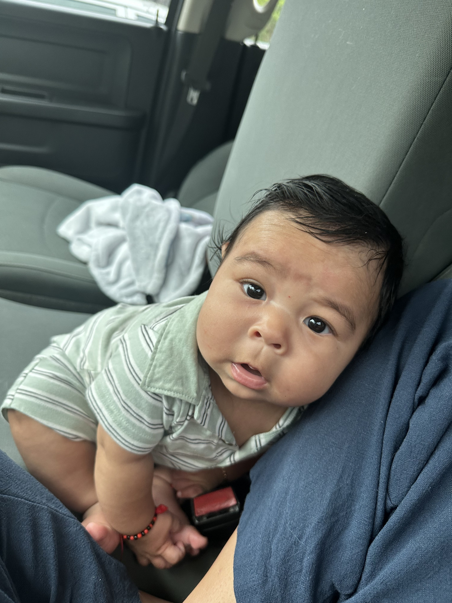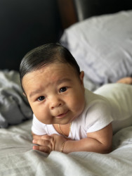 Mateo is the happiest baby ever, with his exceptional days of course. If you call him adorable he does this little smile with shyness. Mateo loves when you dance with him, sometimes before he starts crying he’ll let out a test scream to see if anyone is around. He gets so excited when he sees mommy and daddy wake up next to him.