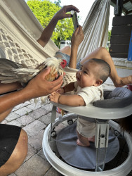 What are Mateo Mejia's favorite activities?Mateo loooooves to be outside, he loves seeing our horses and chickens. We have dogs and he gets so giddy seeing our German shepherd. When the horses see us bring out Mateo they let out a big neigh, and they very gently start sniffing him. He’s a real cowboy at heart! We also put him in the hammock and he seems to enjoy his time on there, and eventually he falls asleep on the hammock for a few hours.
