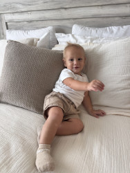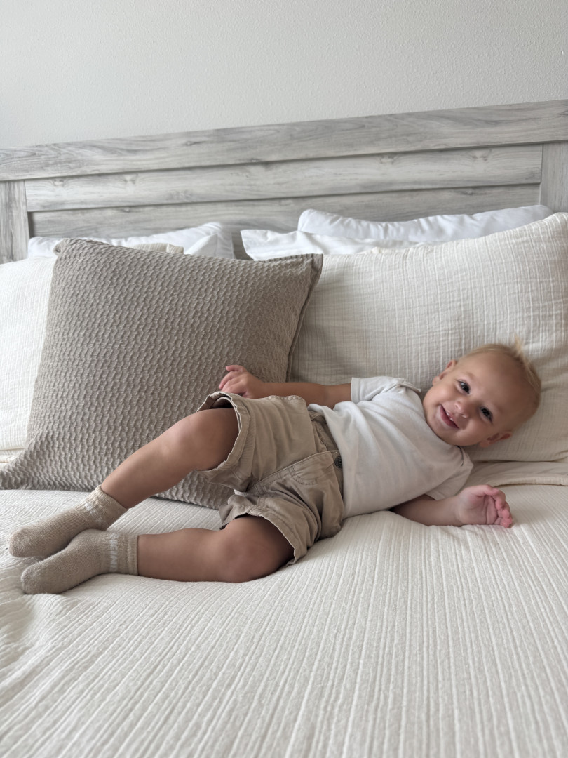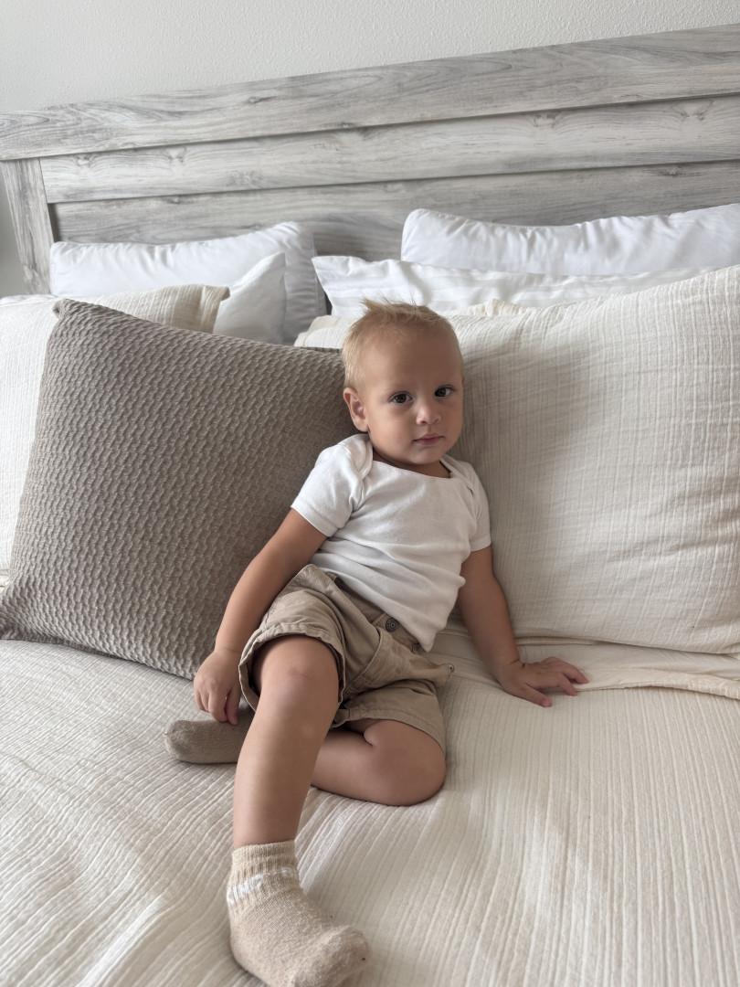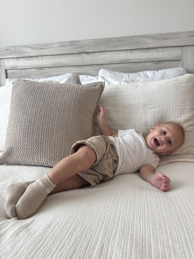 What are Maximiliano Sanchez Gifford's favorite activities?He LOVES trying to walk recently. Even in stores he tries to be a big boy and walk it out. I let him and hold his hand so he doesn’t fall. He loves getting into things he thinks he’s not supposed to be getting into. And whenever I say “what are you doing max?” He does a little laugh and smirk and goes back into the stuff he thinks he’s getting into.