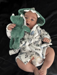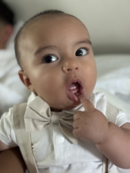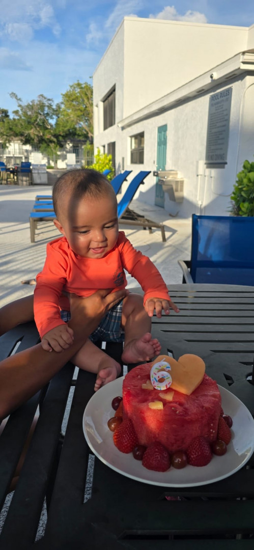 What are Maximo Aponte's favorite activities?Máximo is a little baby deeply loved by his entire family. He absolutely adores spending time with them, and whenever he sees any of his relatives, his joy overflows as he rushes to embrace them. He loves being in the pool, and bath time is one of his favorite moments. He finds wonder in watching fireworks and even the rain. And above all, he delights in playing with our little puppy, Kahny — laughing with pure happiness whenever she lovingly licks his tiny feet.