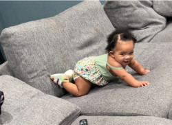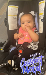 What are Meara's favorite activities?Meara favorite thing to do right now is eat she tries to eat everything she see she is 8 months old she can hold her bottle she can sit up and she is crawling and standing up trying to walk she likes to watch tv and play with her toes she like to hug you and put her head on your shoulders when she is tired Meara is trying to say words like stop and hi and bye and somehow can say my name Kia I love the joy my baby gets from seeing her momma these moments are priceless and precious I ❤️it