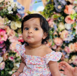 What are Meera's favorite activities?She fills every moment with joy, whether she’s dancing to “Naatu Naatu” with unstoppable energy, exploring the park with fearless curiosity, or melting her grandparents’ hearts by saying “I love you” with her signature Korean heart sign. Her spirit is full of love, laughter, and light—everything that makes childhood magical.