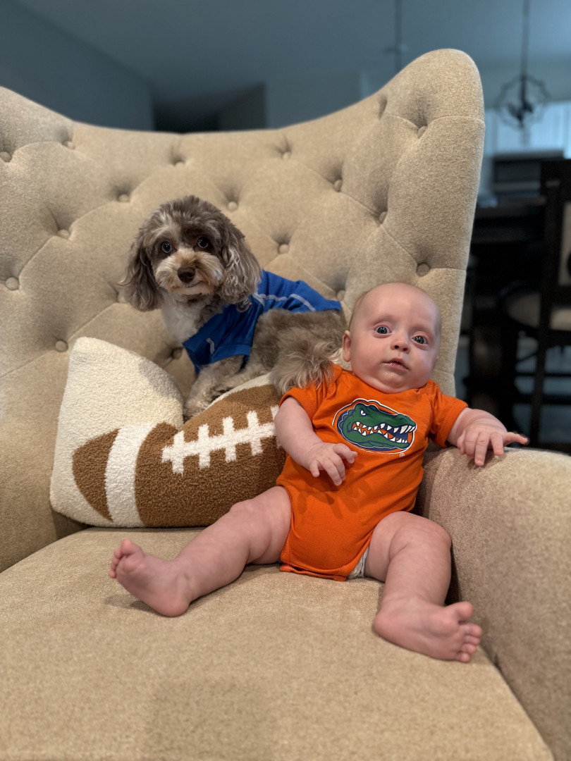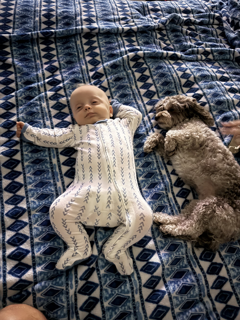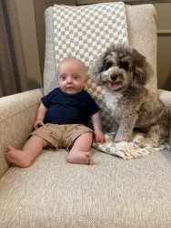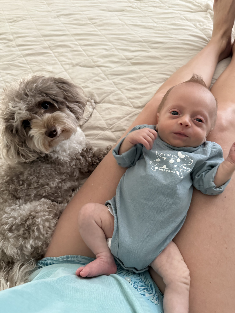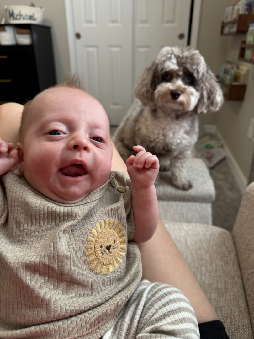 What are Michael Cooper's favorite activities?Micro loves to eat, snuggle , watch his sister (dog) Pretzel run around , enjoys tummy time, baby talk, shopping with mom and loves to be outside. He also loves to sneak in screen time with dad watching sports even though he is not supposed to!