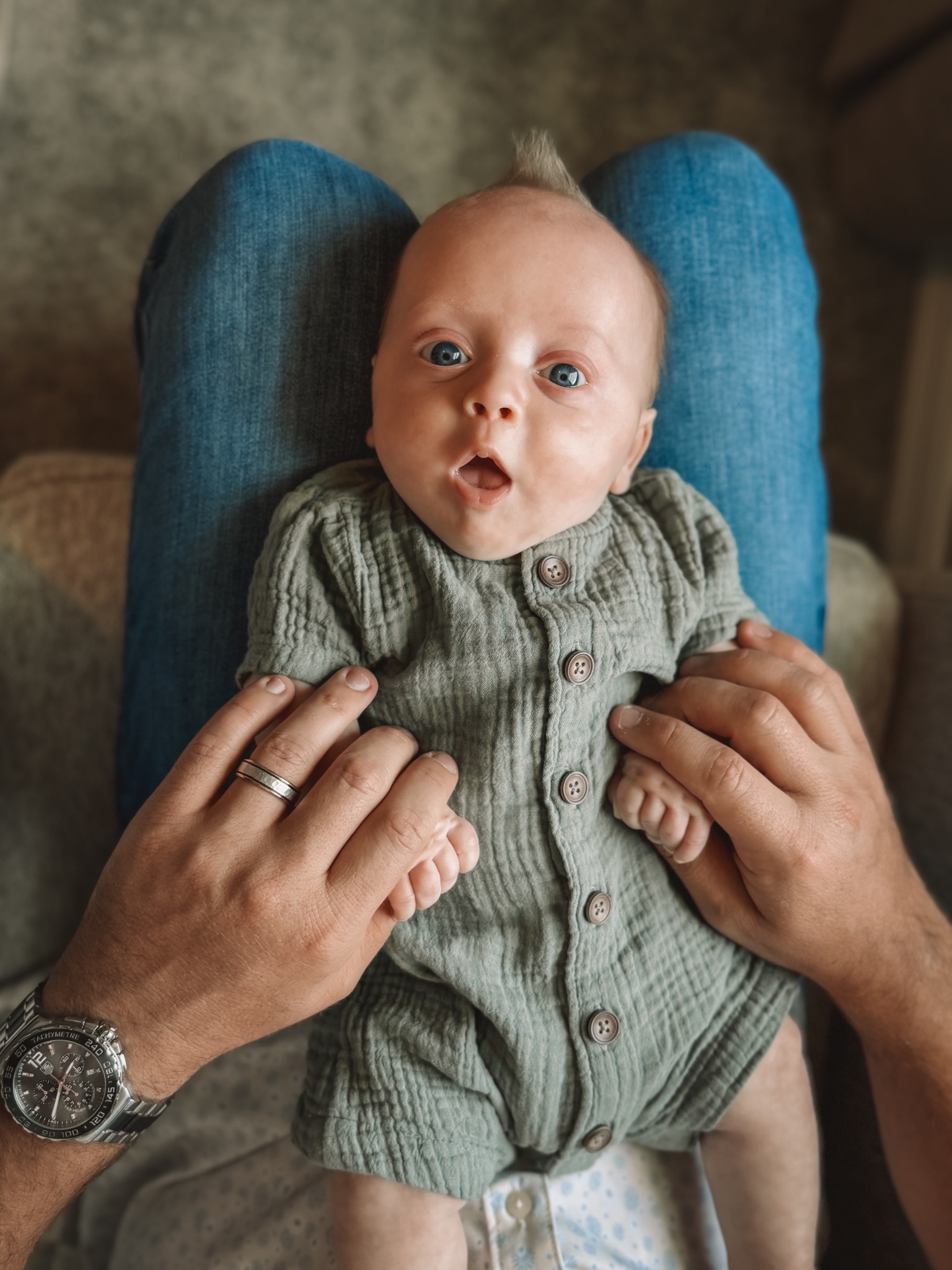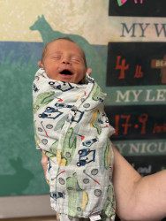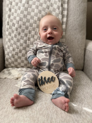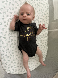 Michael Cooper also known as “Micro” , Mohawk Mike, and MM is a preemie who made his grand entrance on Mother’s Day! He continues to keep us on our toes as he learns and continues to flourish each day. He is such a happy baby boy with a contagious grin , a thinning mohawk ,the biggest blue eyes, and a tummy that never misses a meal!