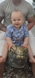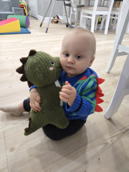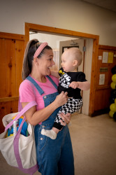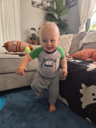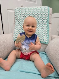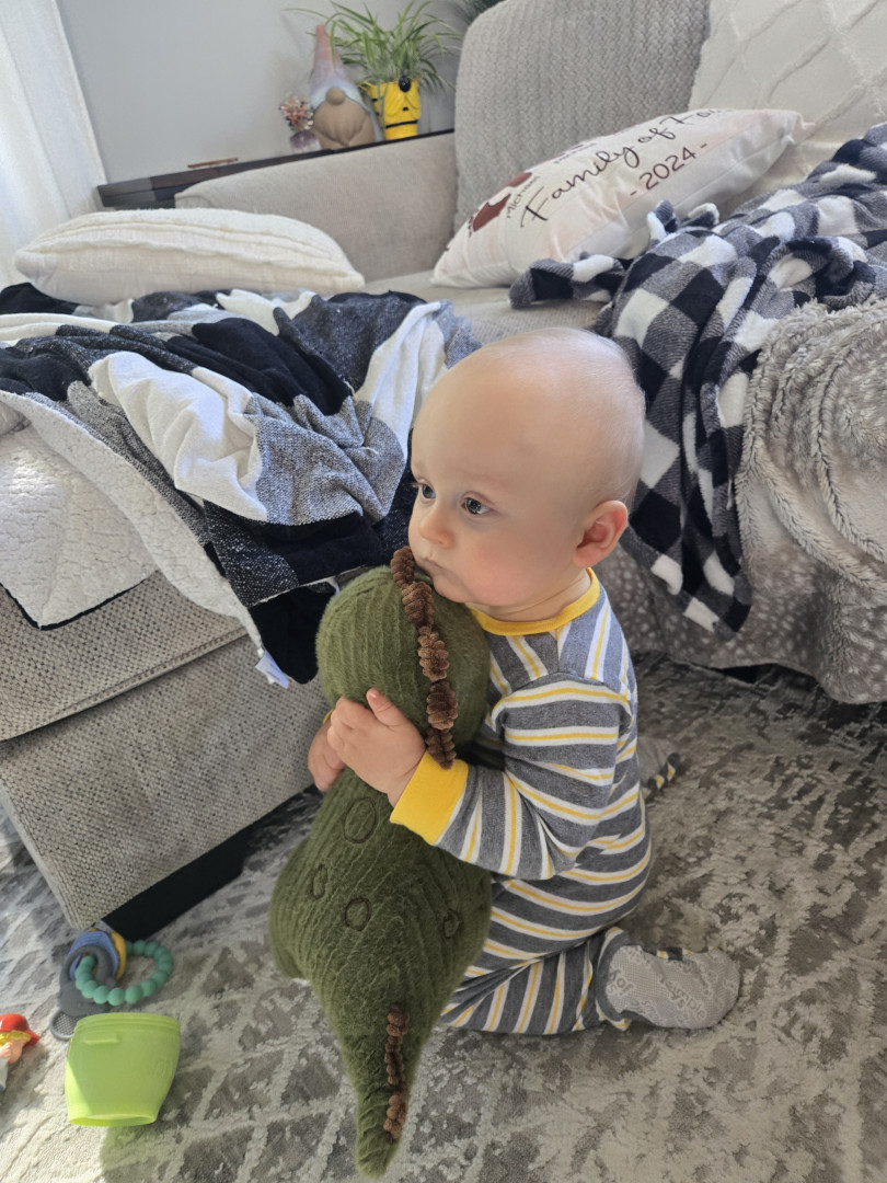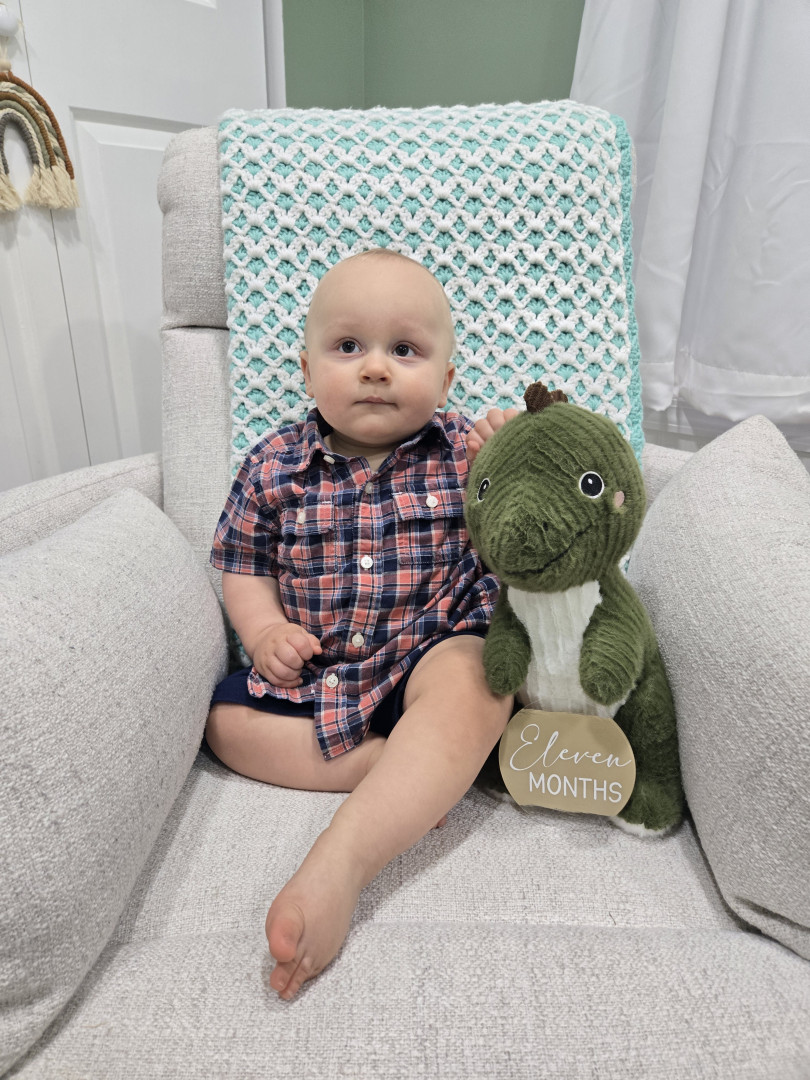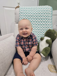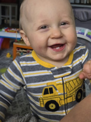 Michael is very outgoing, loves to play, pet dogs, and laugh! He is always full of smiles,and it's so cute seeing his 2 bottom teeth. Mikey loves food. Carrots are currently his favorite! He crawls all over the place on little adventures and loves going under the table or chairs. Mikey always has nuggie right by his side. Nuggie is a stuffed dinosaur we named after one of his favorite foods, chicken nuggets. He is very loving, always giving big hugs and waving bye-bye!