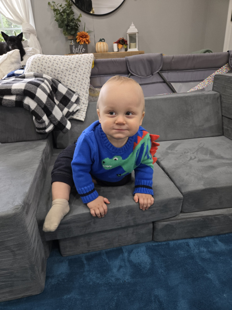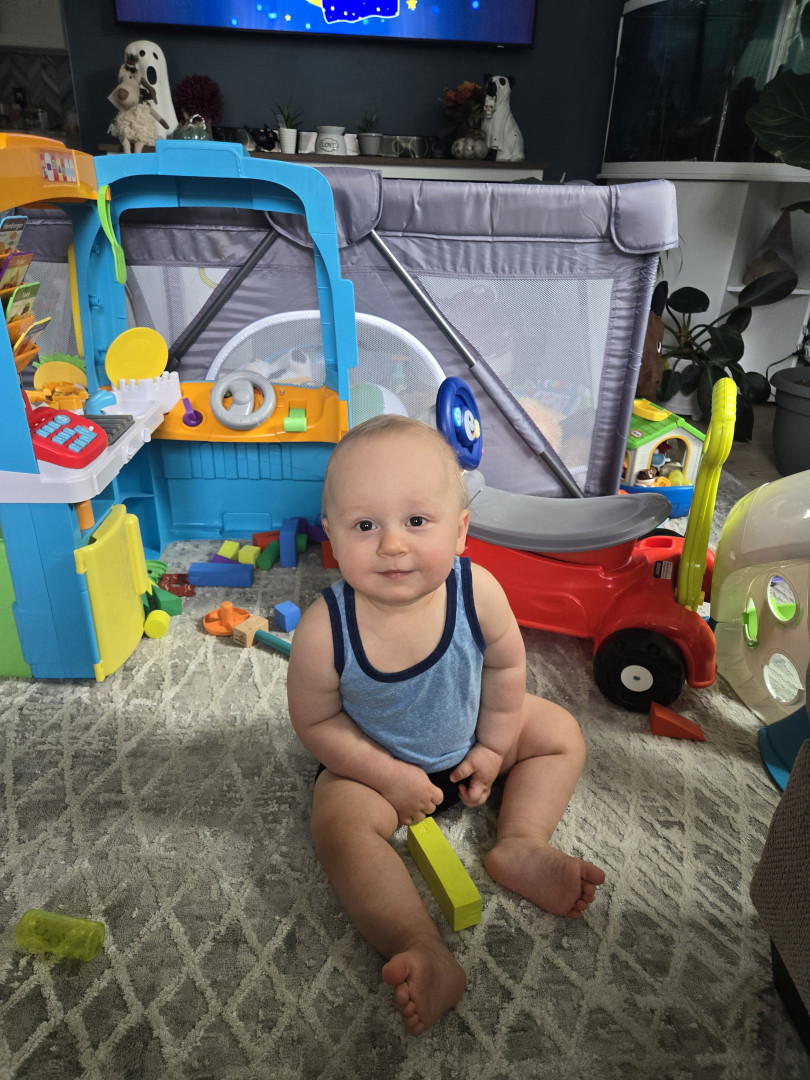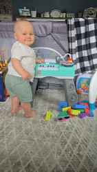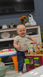 What are Michael's favorite activities?Michael enjoys playing with his activity cube, bouncing in his jolly jumper, dancing to music, and reading books with mama or dada. He enjoys going on walks and having the breeze hit his little feet, and loves going grocery shopping with mama. Mikey is very curious and observant of his surroundings, so playing hide a seek or peekaboo is also a favorite. Mikey also loves playing with his foam blocks and knocking them down.