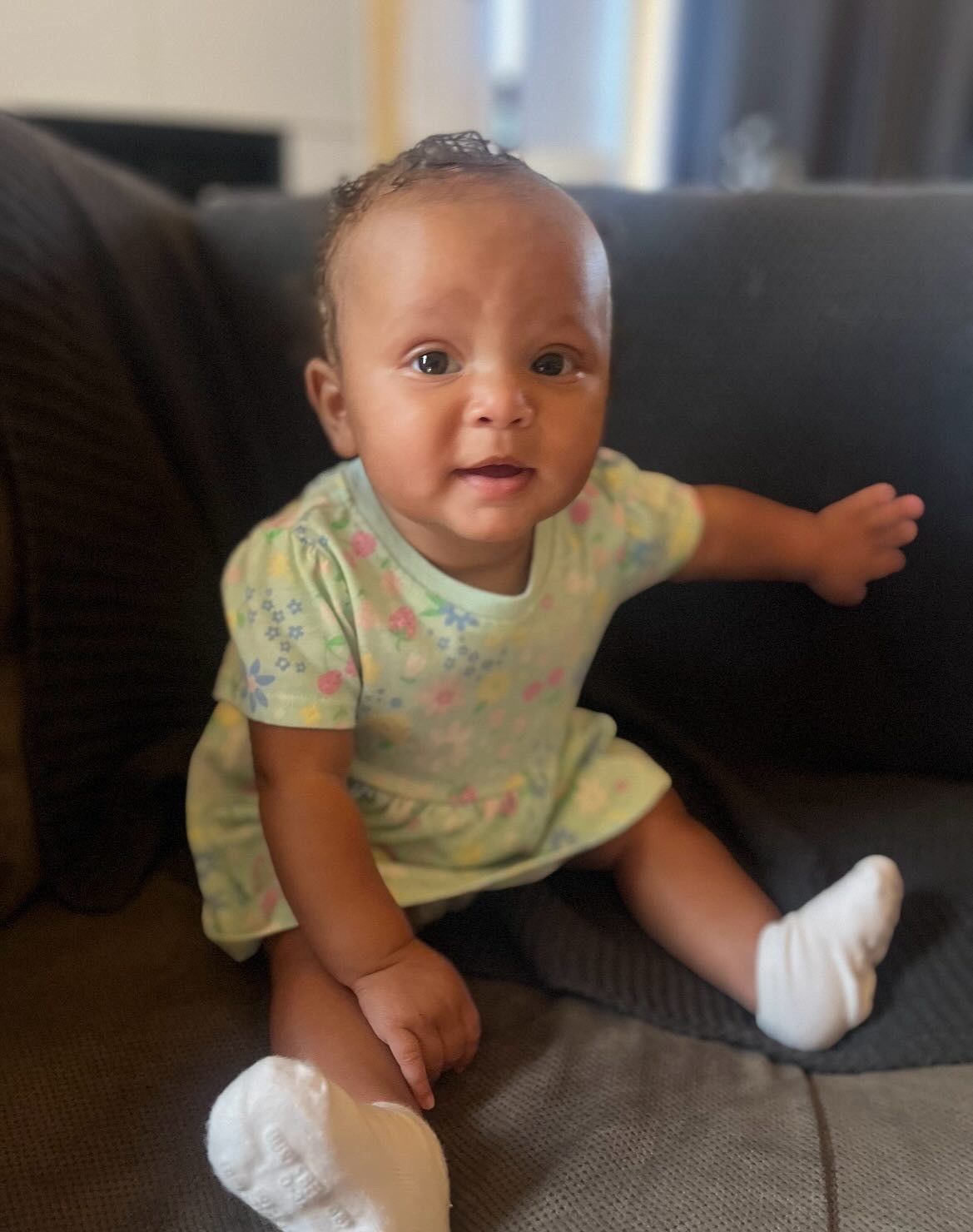 At 7 months old Milan is always smiling and full of joy. She adores her big sister and is determined to keep up with her, making every day brighter with her happy loving spirit