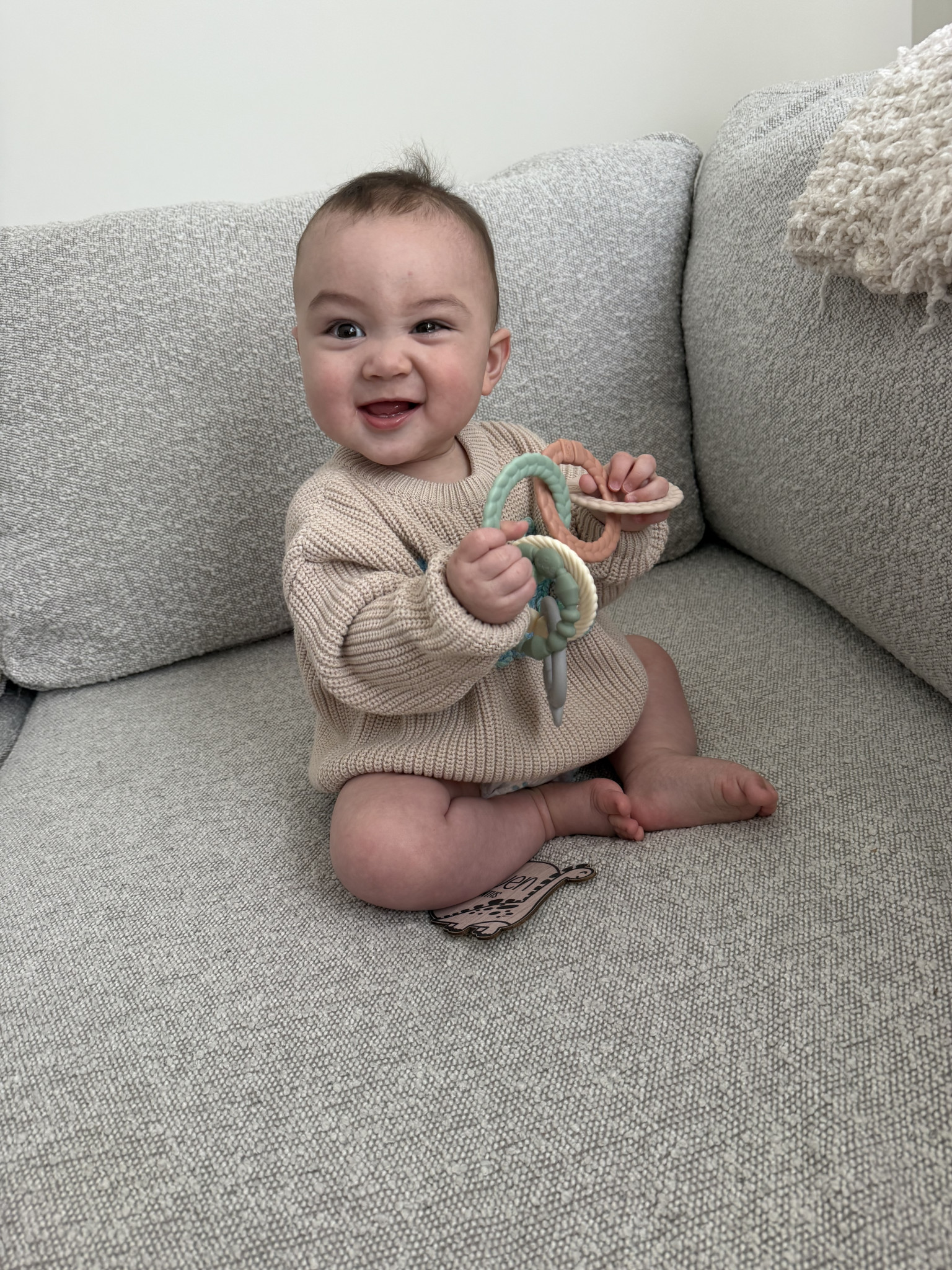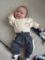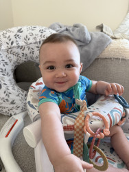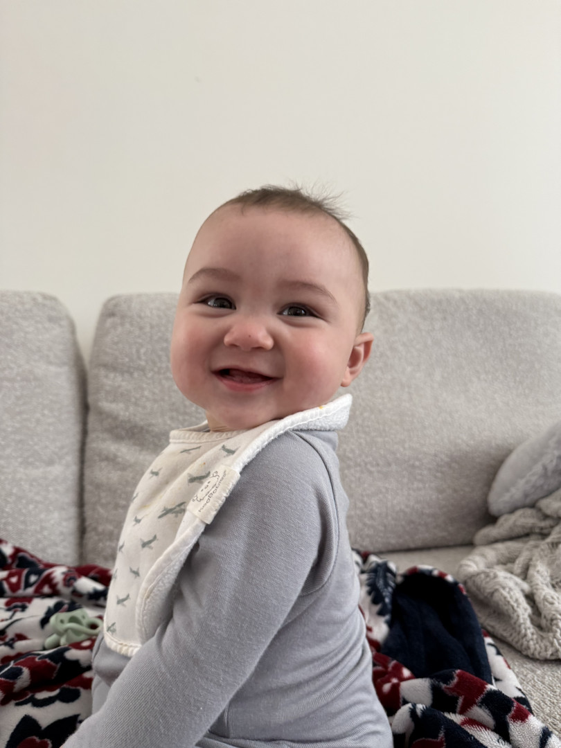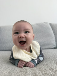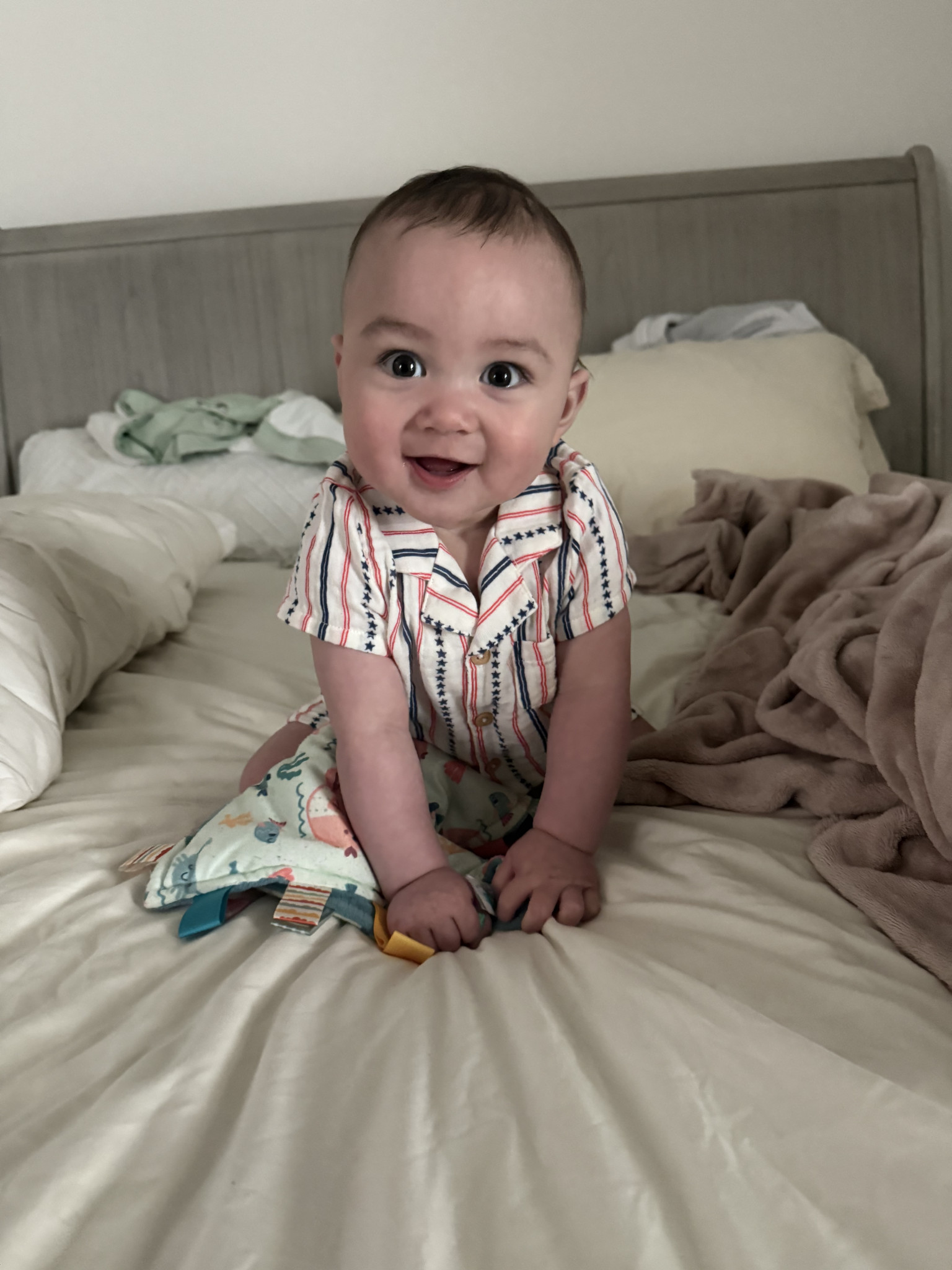 Miles is FULL of personality. His laugh and giggles could brighten anyone’s day. He is the silliest little bug. The most random thing can make him giggle. After six long months of colic, we are loving our happy baby.