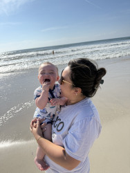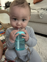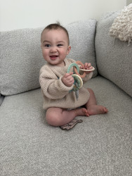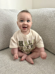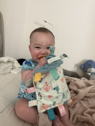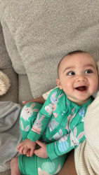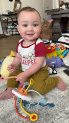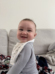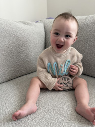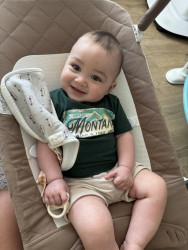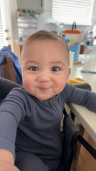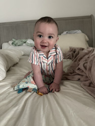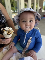 What are Miles's favorite activities?He loves anything water related and being outside. Miles is a big foodie (we’re still learning how to swallow some things) but will stare you and the food down until he gets a bite. He also loves chasing his sissy (dog) around.