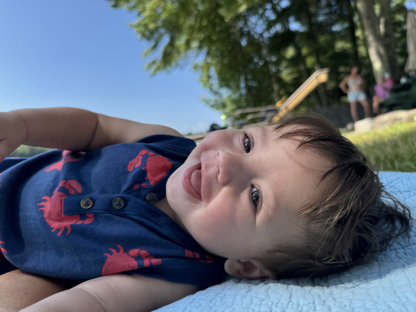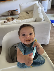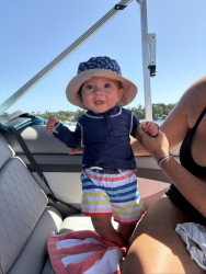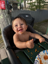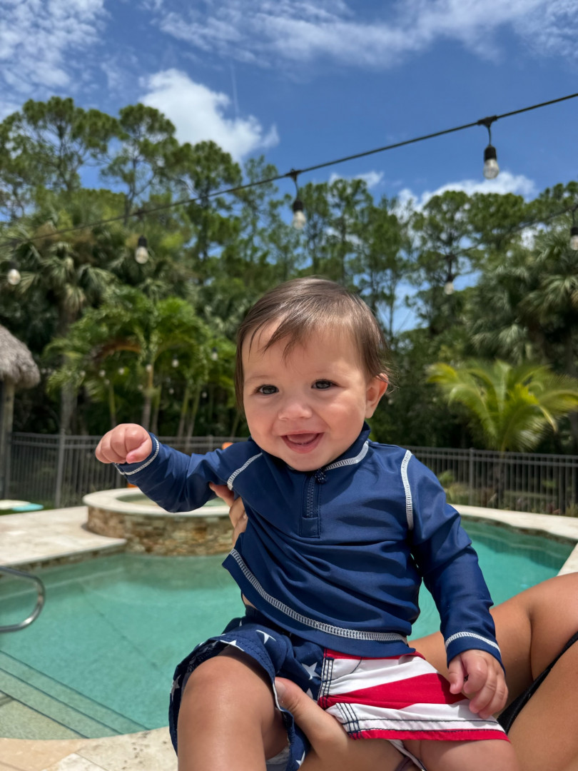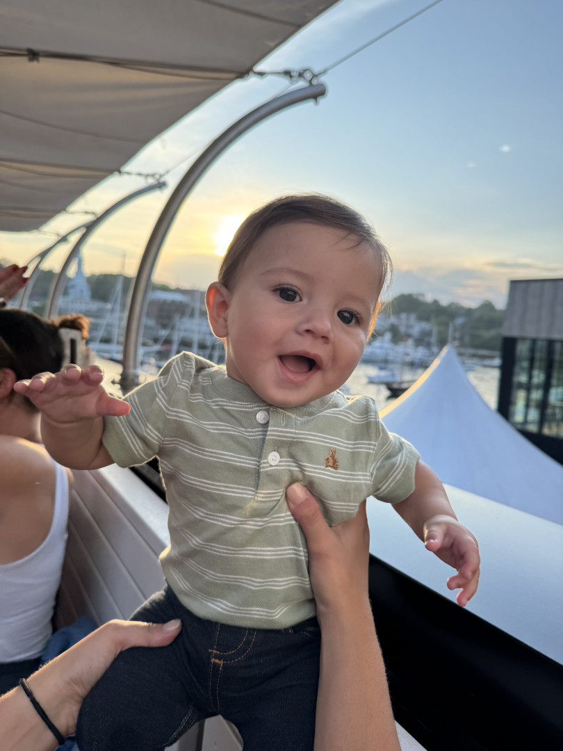 What are Miller Rocco Mahan's favorite activities?At 7 months, Miller is a curious little explorer—army crawling everywhere and reaching for everything. A true water baby, he loves bath time, pool, boat and splashing with joy. Peekaboo brings big giggles, music makes him light up, and he’s fascinated by his reflection. He’s always watching, learning, and discovering the world around him.
