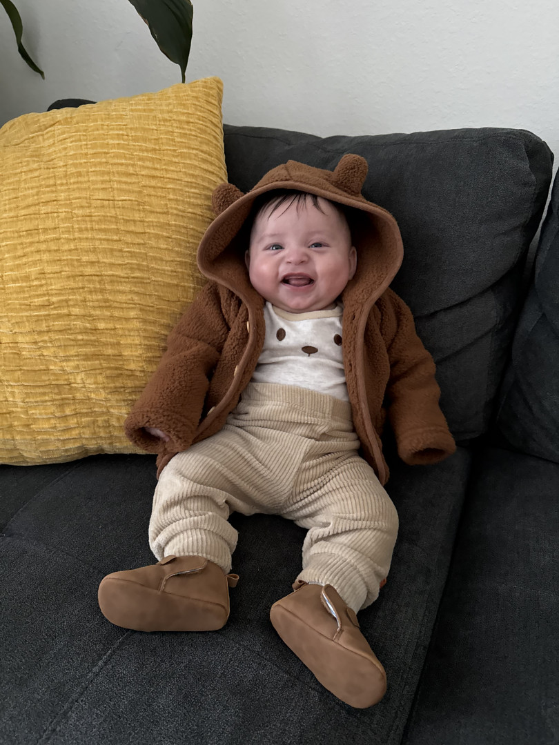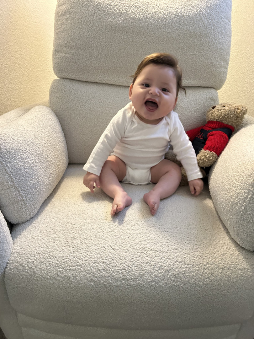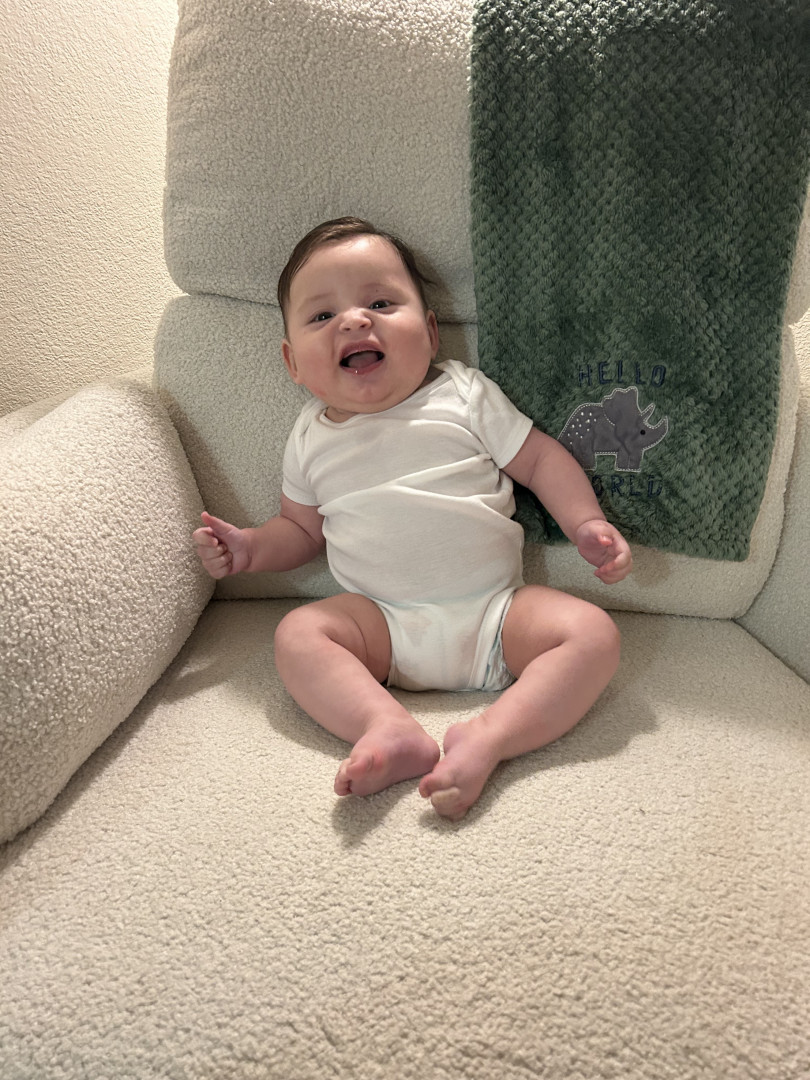 What are Milo Ramirez's favorite activities?Milo seems to find peace outdoors. He loves a walk in his stroller or the carrier so he can take every bit of his surroundings in. He is curious and observant! Most recently, he is learning to crawl and stand, so he loves to get onto his feet, and every now and then he’ll give a little wiggle dance.