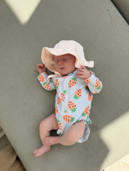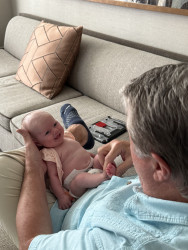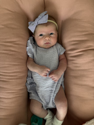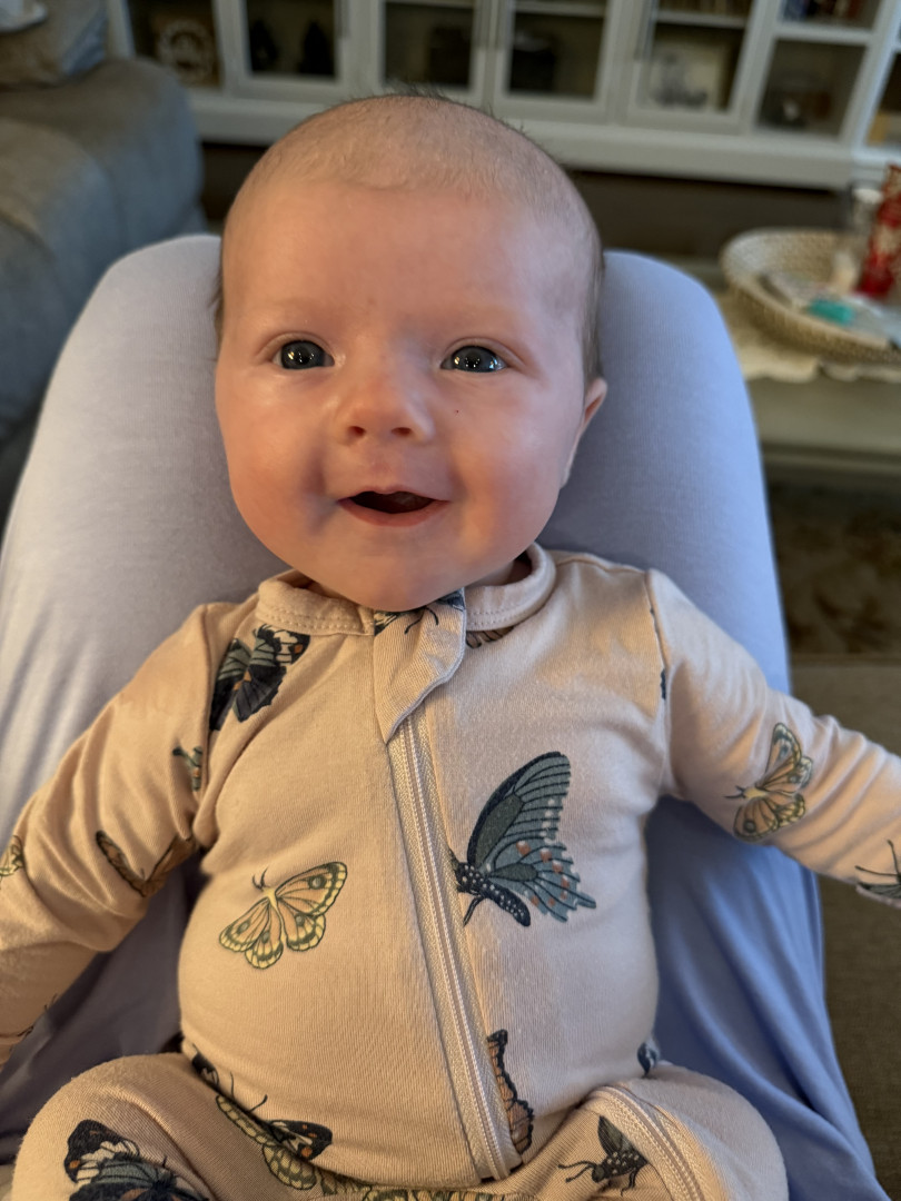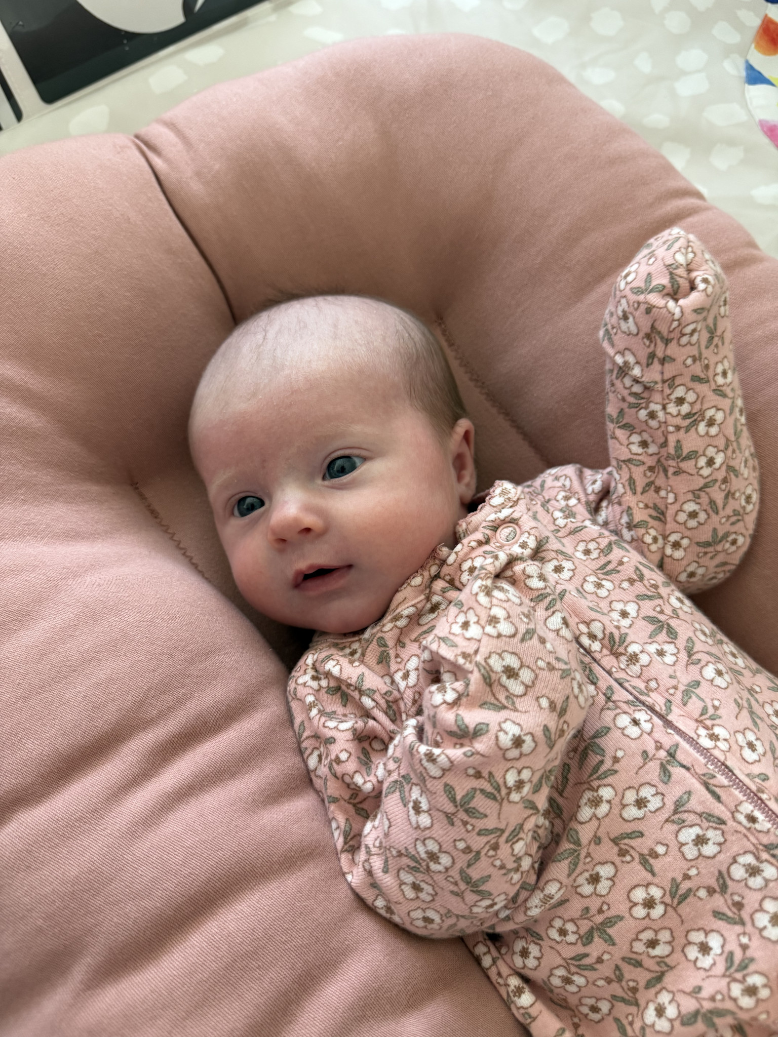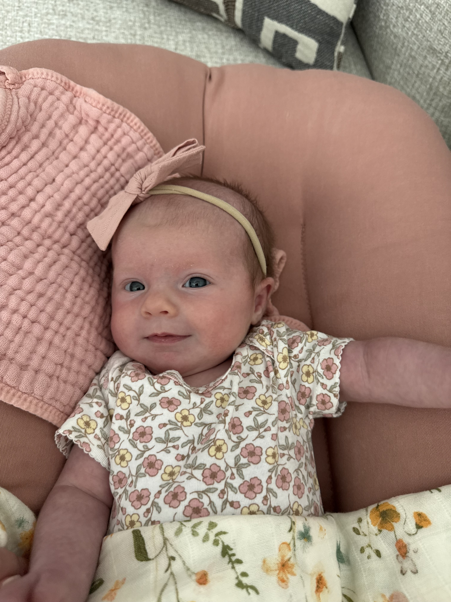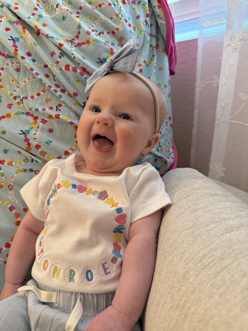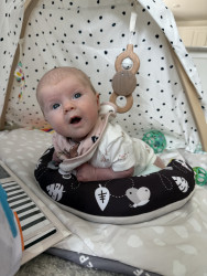 What are Monroe Beasley's favorite activities?Monroe loves to play on her Lovevery play mat and hit at her contrast ball. She also loves tummy time on mom and watching her contrast cards.