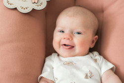 Monroe loves to smile and chat with her mom and dad during face to face time! She is constantly watching her parents to see what facial expression she should make. She loves to eat and sleep all the time and loves playing with her cousin Claire.