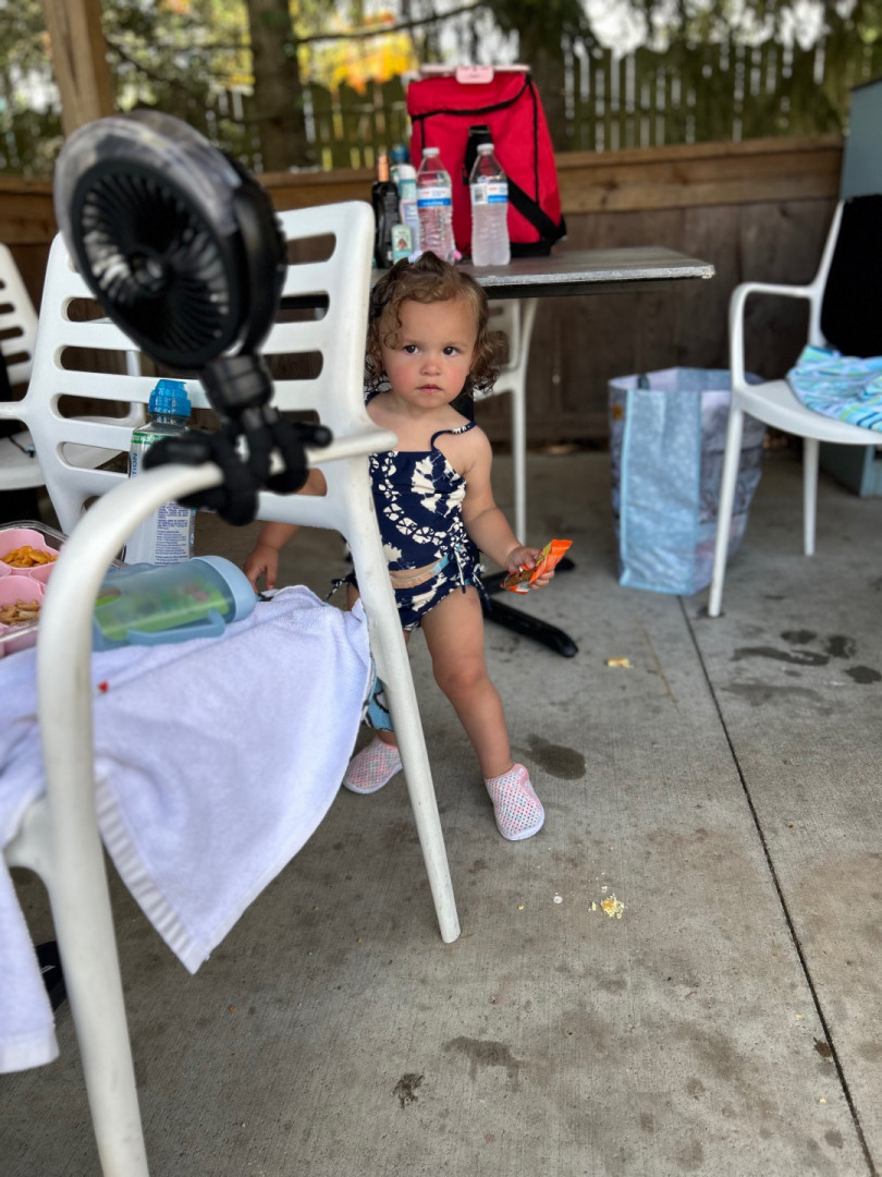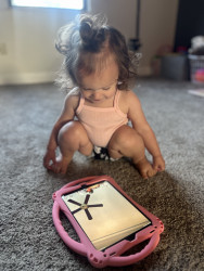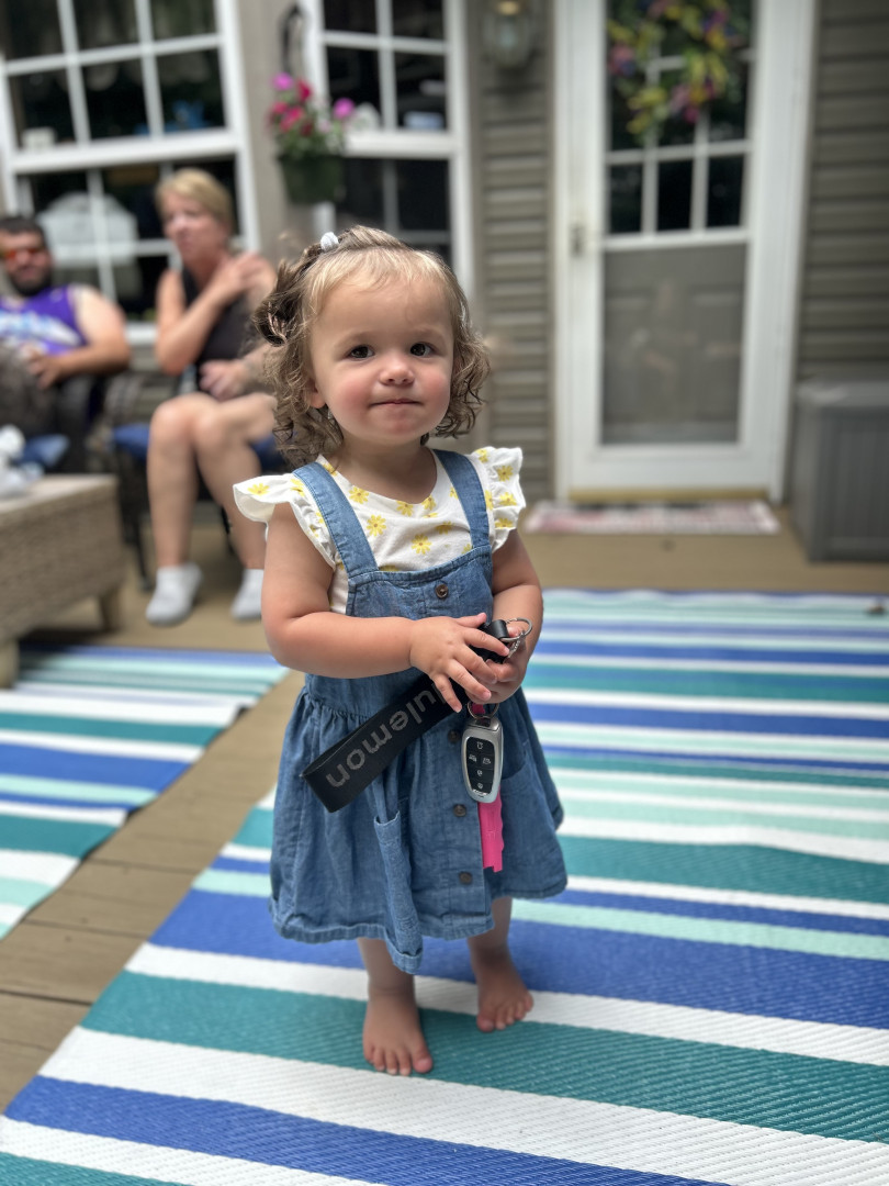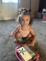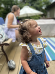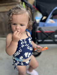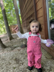 Montana is such a sweet girl ! Her new favorite thing to do is to wave and say hi to everyone we pass! It’s so adorable ! She also LOVES animals especially our 3 doggies ! Everytime we pass a dog she says “Baby, Baby!” and has to say hi to them too!