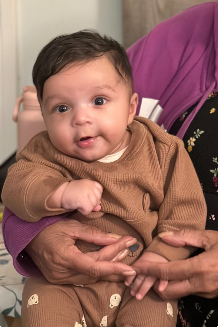 What are Musa Mushtaq's favorite activities?Musa loves flying around like an airplane. He lights right up at anyone who gives him attention, talks to him, compliments him and tells him he’s handsome. Musa’s favorite activity is cooing back, he kicks his little legs like he’s dancing, making every moment feel like a tiny celebration. He’s got quite the moves for a 4 month old baby.