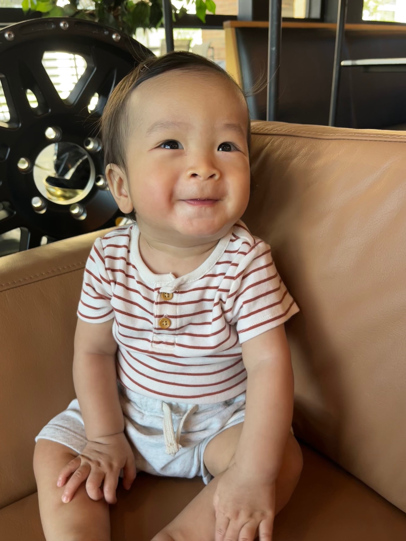 Arriving 3 weeks before his due date, we always knew he was just ready for the world. Myles is such a happy baby and loves to smile. Whenever people are around him they would always describe him as such a chill baby because he is always so calm and easy going when they see him. He is such a character and loves to laugh. He is also a big mamas boy, he loves giving mommy morning kisses on the cheek and always lights up when he sees her.