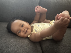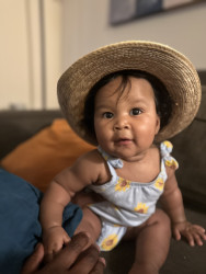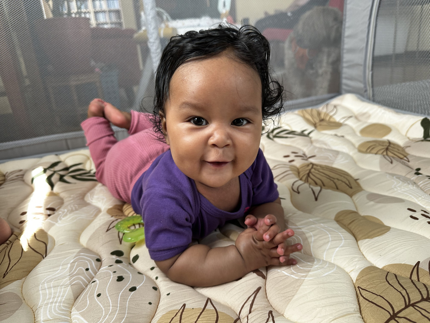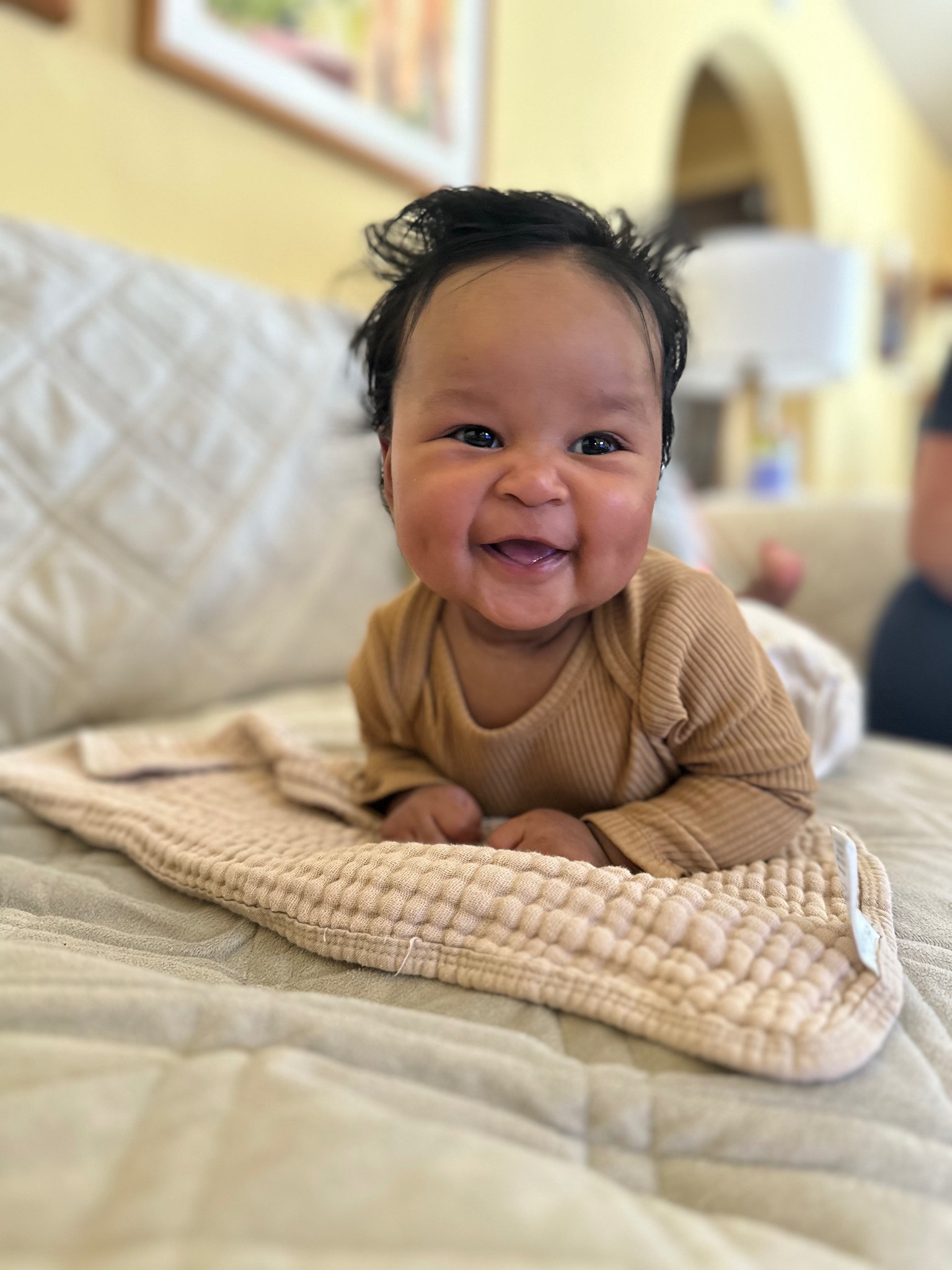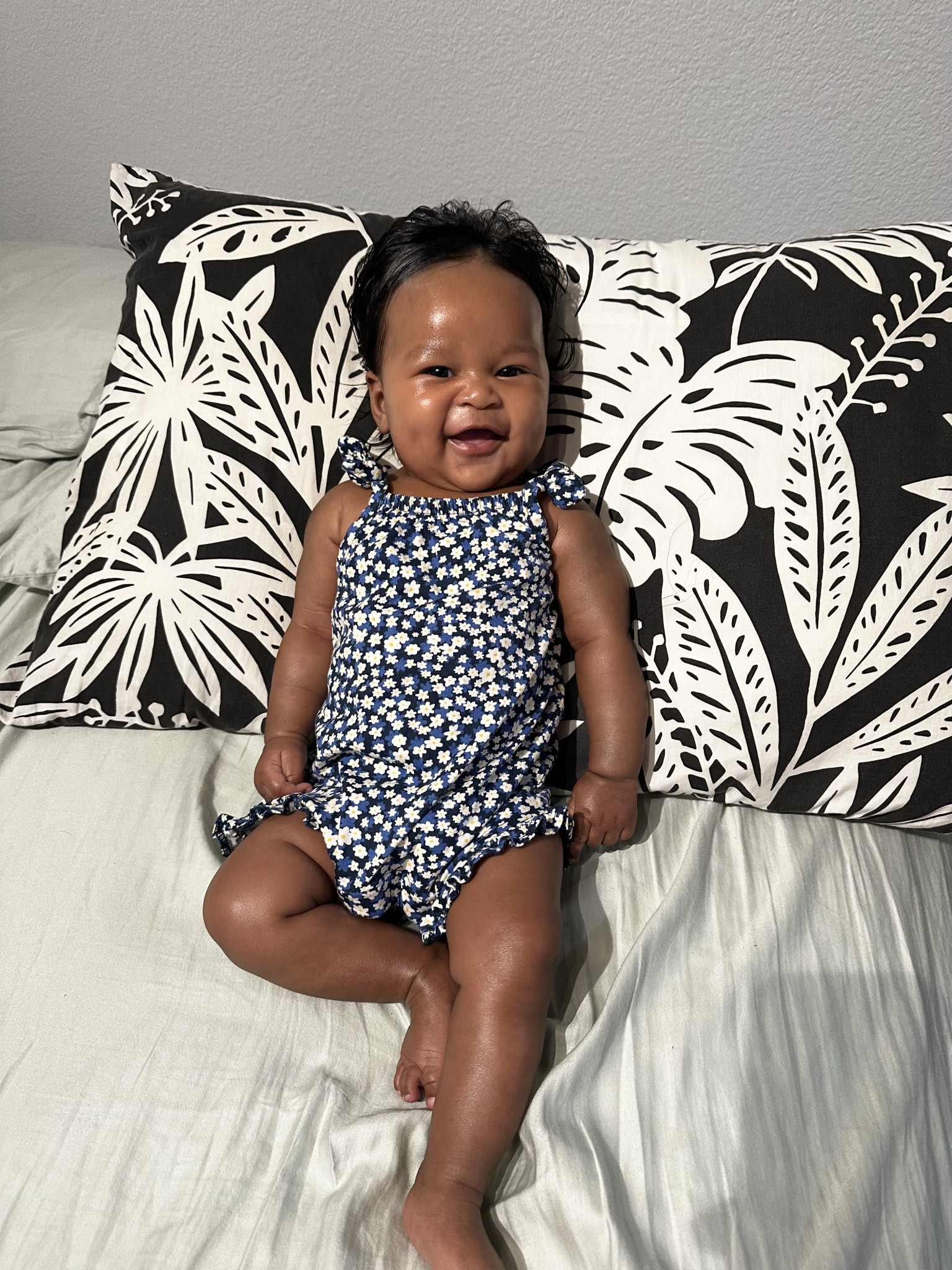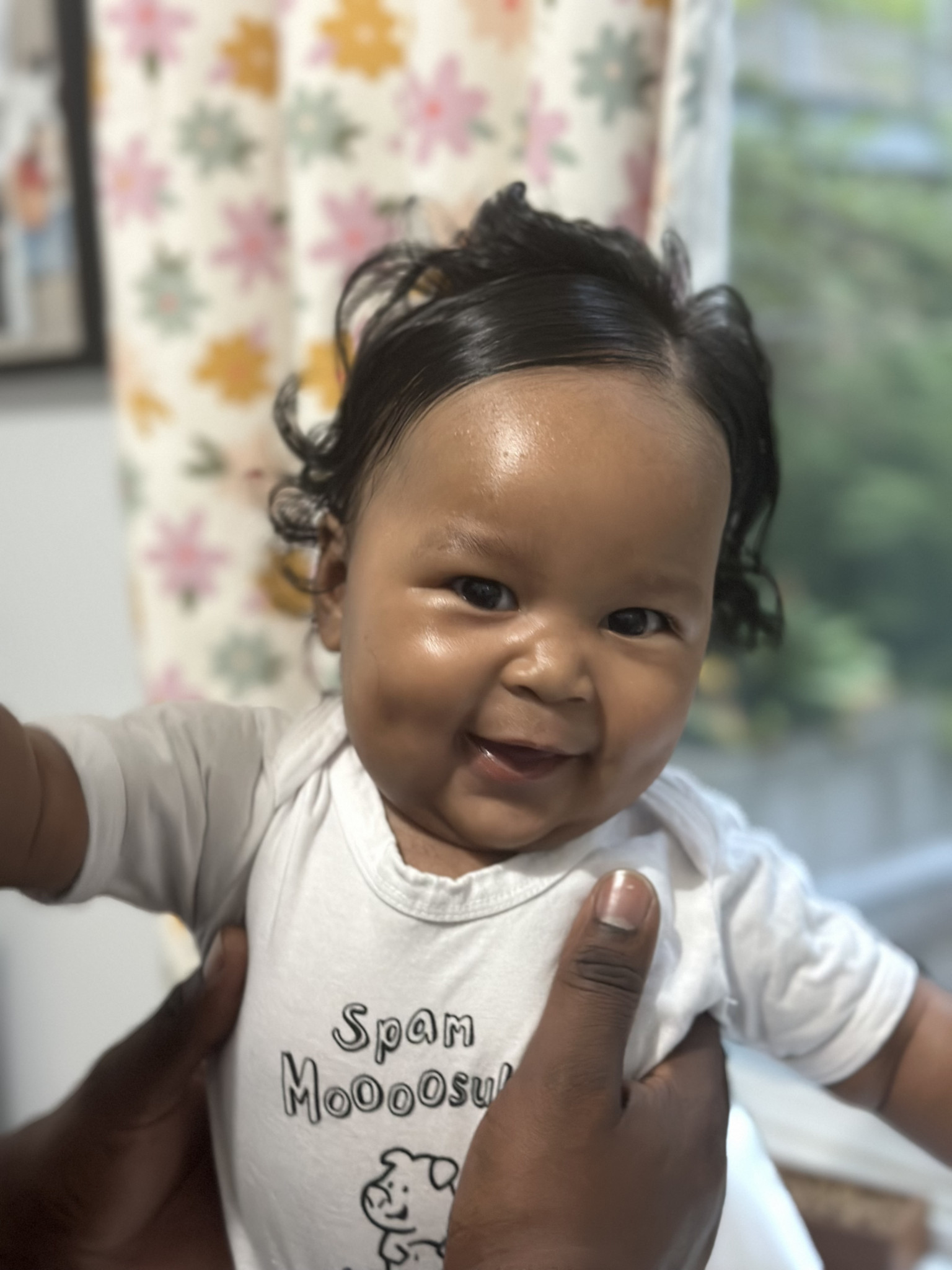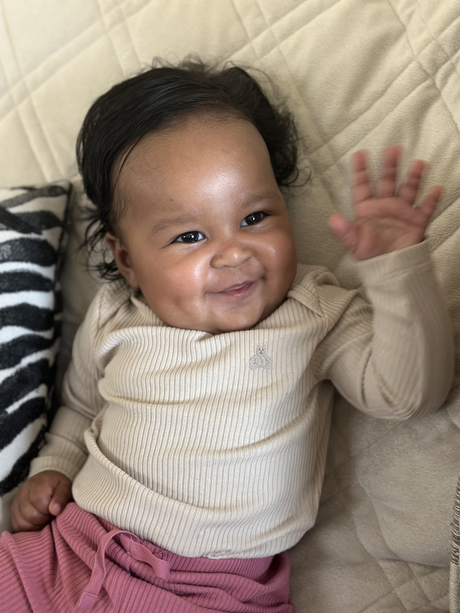 You know how some people just light up a room? That’s Nai’a. Named after the Hawaiian word for dolphin, she truly lives up to her name. The moment you meet her, she welcomes you with expressive eyes, a huge smile, and adorable dimples. Her bubbly personality radiates with laughter and a love for bouncing up and down with joy. Singing to her brings out squeals of excitement and amazing dance moves! She’s incredibly curious, always observing and taking note of the world and people around her.